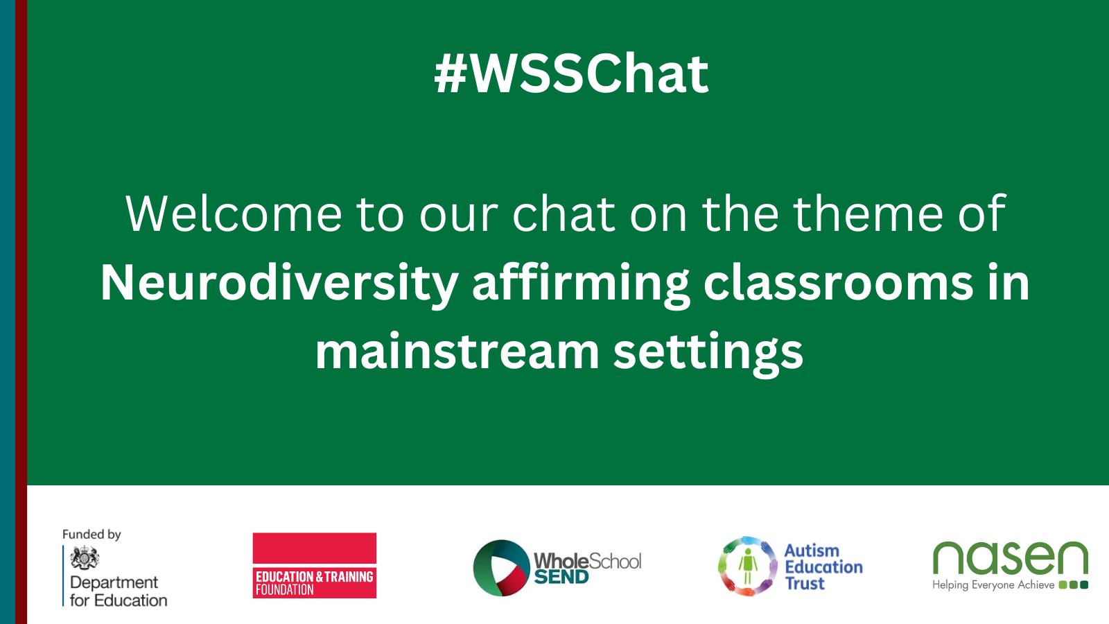 It'sagreatplacetoshareideasandusefultoolstohelpdevelopinclusivepractice. Searchusing#WSSChatandremembertotagyourreplies!