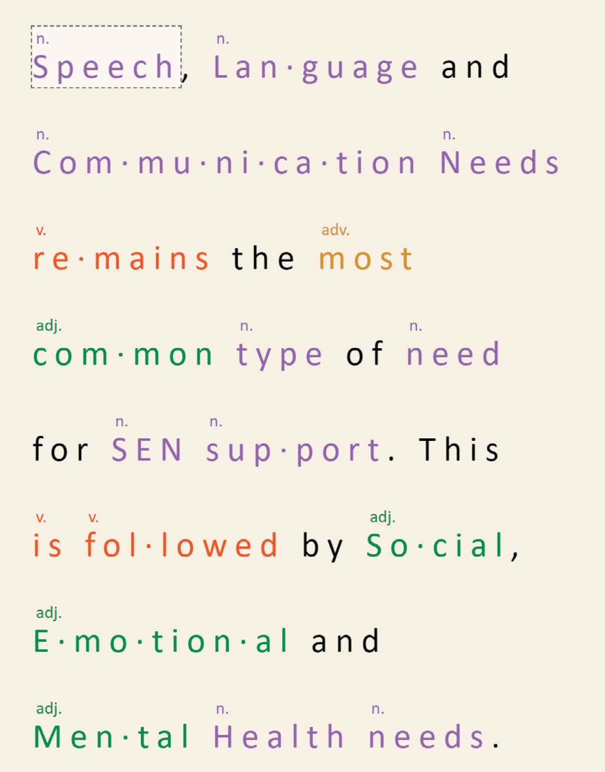 Speech, language and communication needs remain the most common type of need for SEN support, with autism being the highest type of need for those with an education healthcare plan (EHCP).