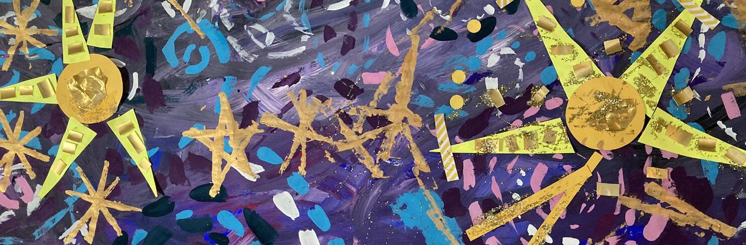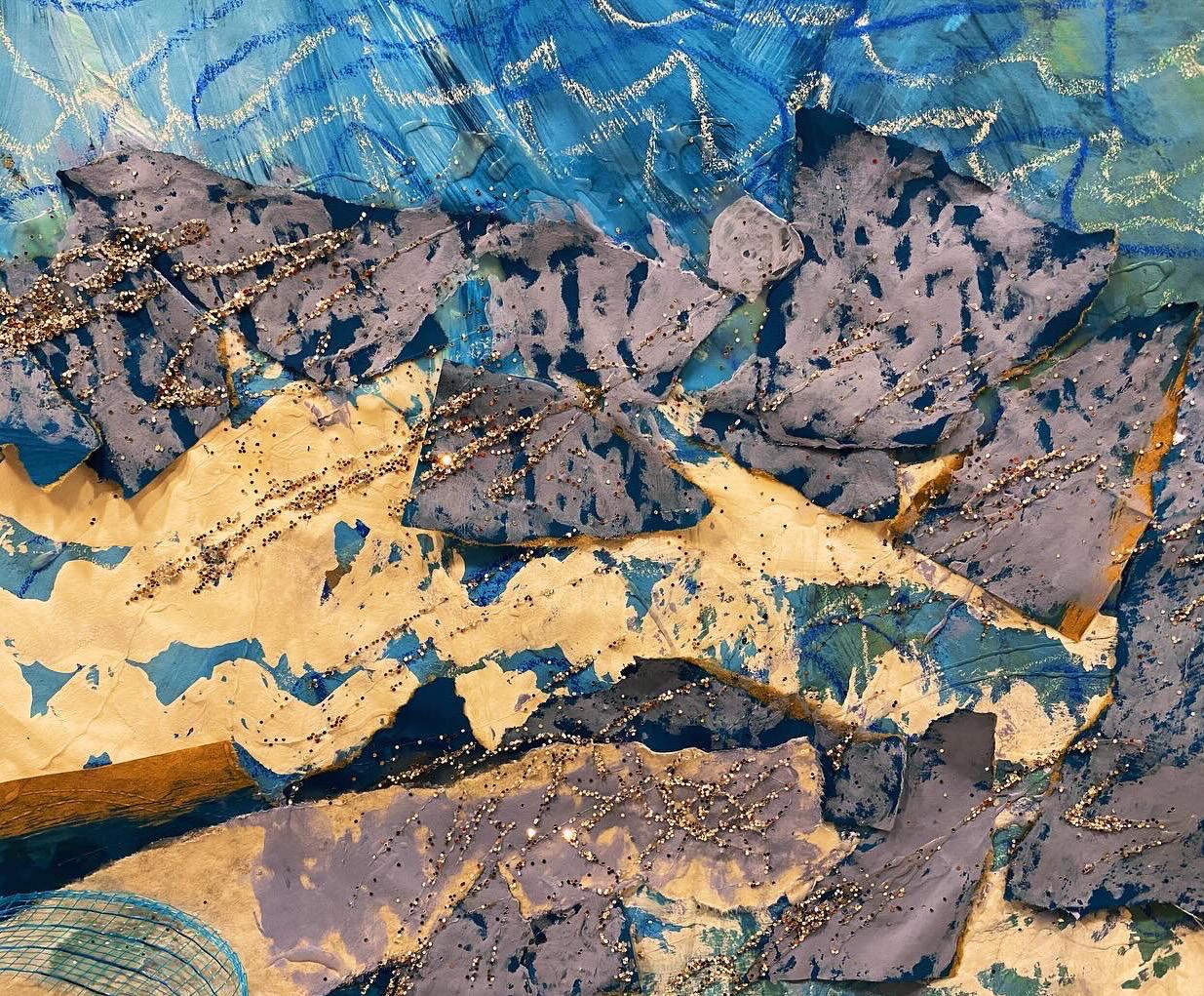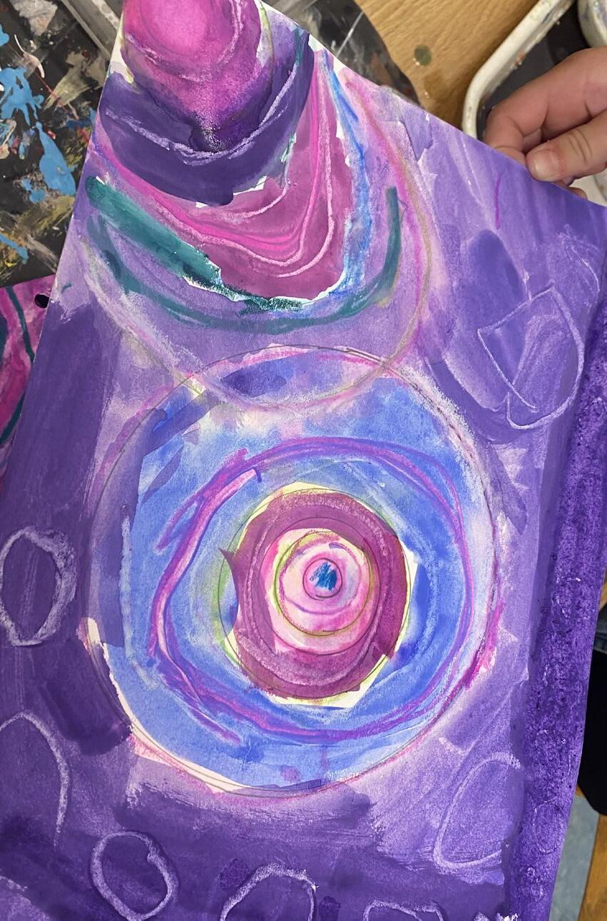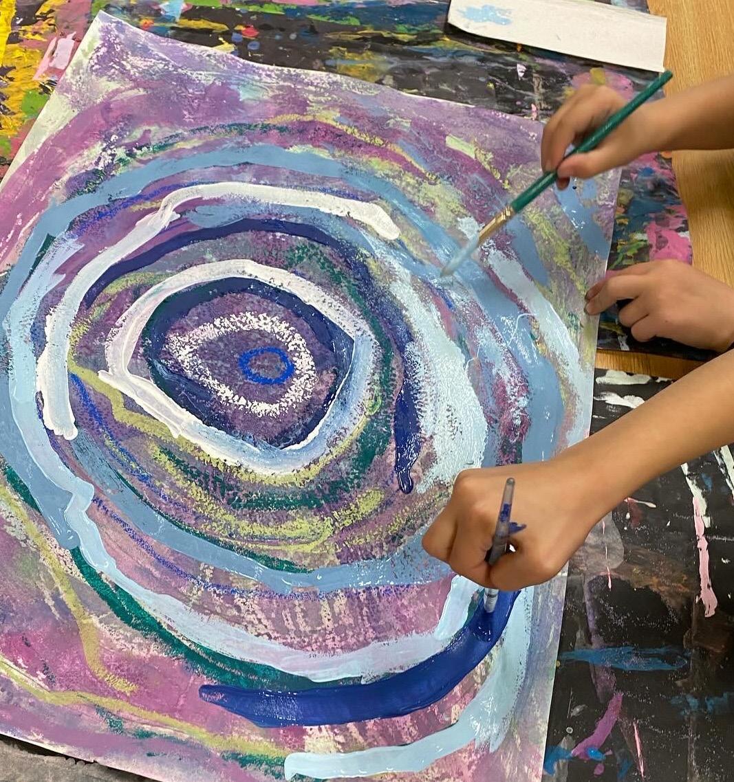 Inspired by our year’s theme of Ripples, students in the art studio have been making a splash! Younger artists observed ripples and created some of their own patterns by painting, ripping, arranging, overlapping, and gluing paper.