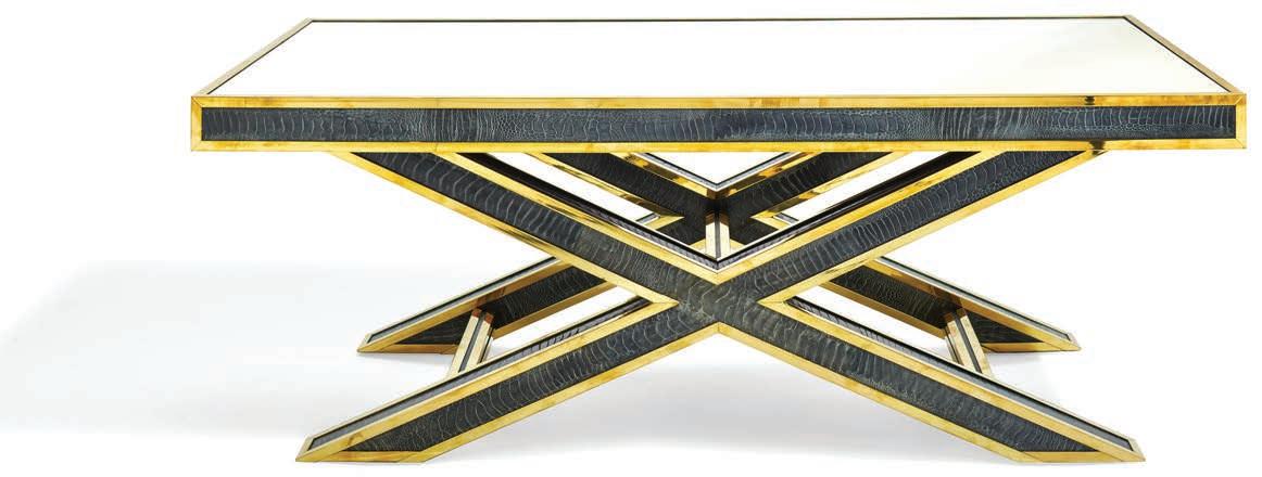 Each piece of designer Anne Hepfer’s curated collection is made with ethically sourced ostrich leather from farmers in Africa. Available in 20 rich shades with brass or polished silver trim and mirror accents, a percentage of sales of this X base cocktail table ($6,880) goes to the South African community where it was made.