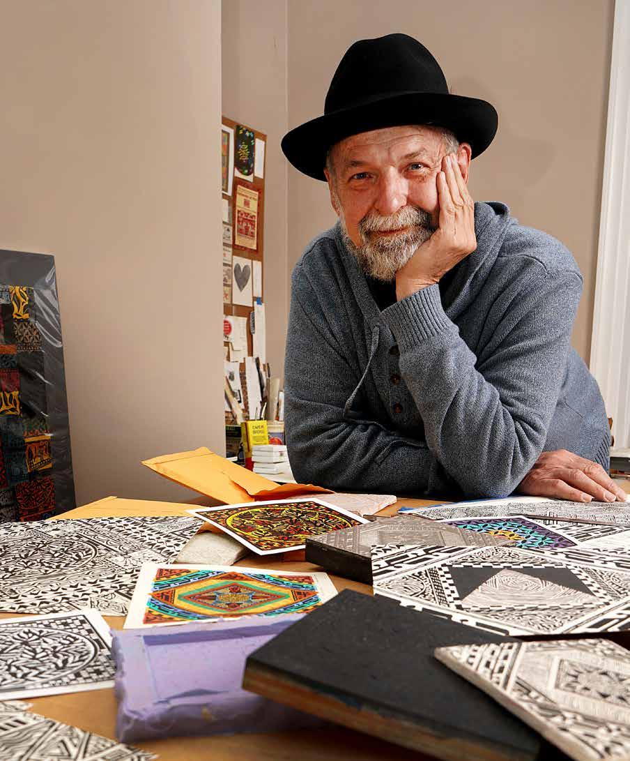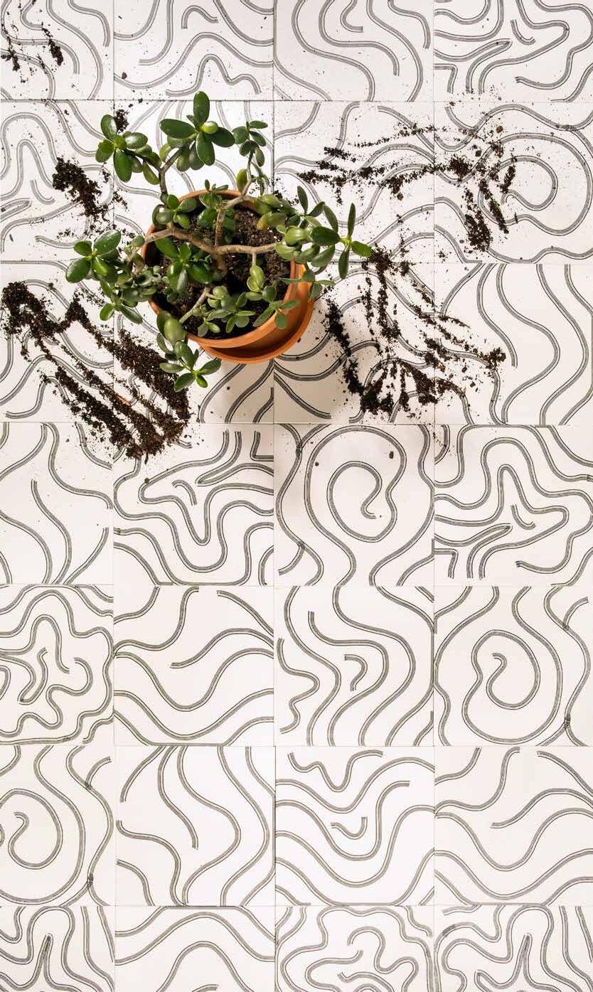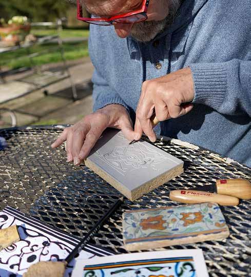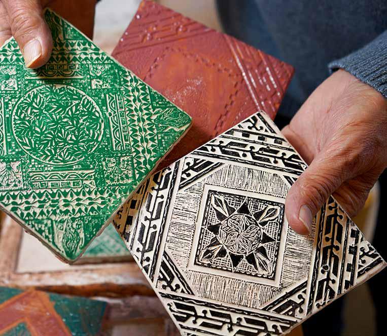 Master printmaker Jim Sherraden brings his textiles and patterns to tiles for an artistic interior application.