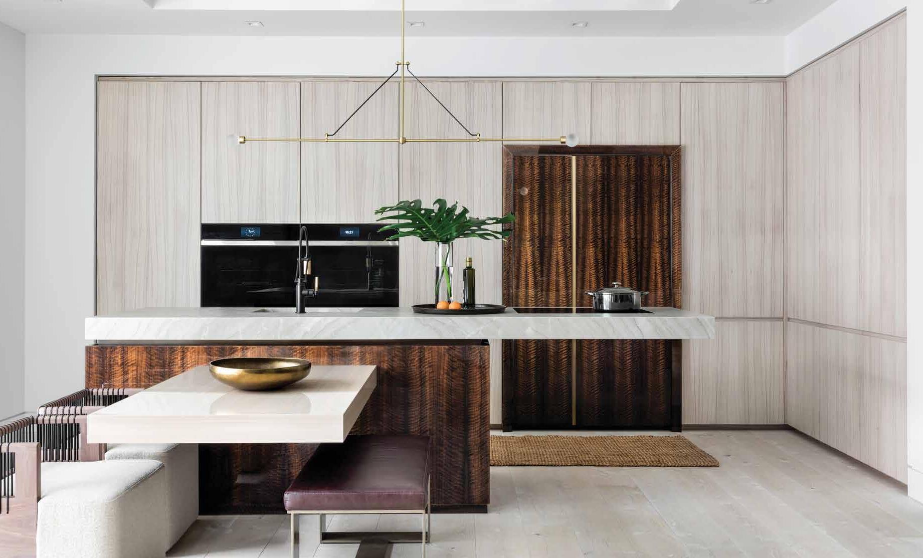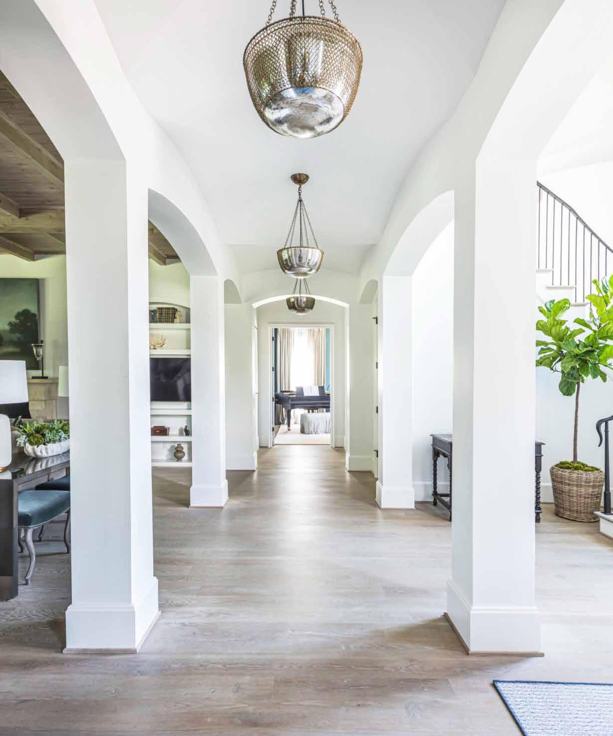 Elizabeth Pogue opened up the structure for more flow and cohesion while still keeping spaces special and defined with the help of layers of fixtures from Circa Lighting. The end result creates warmth and definition throughout.