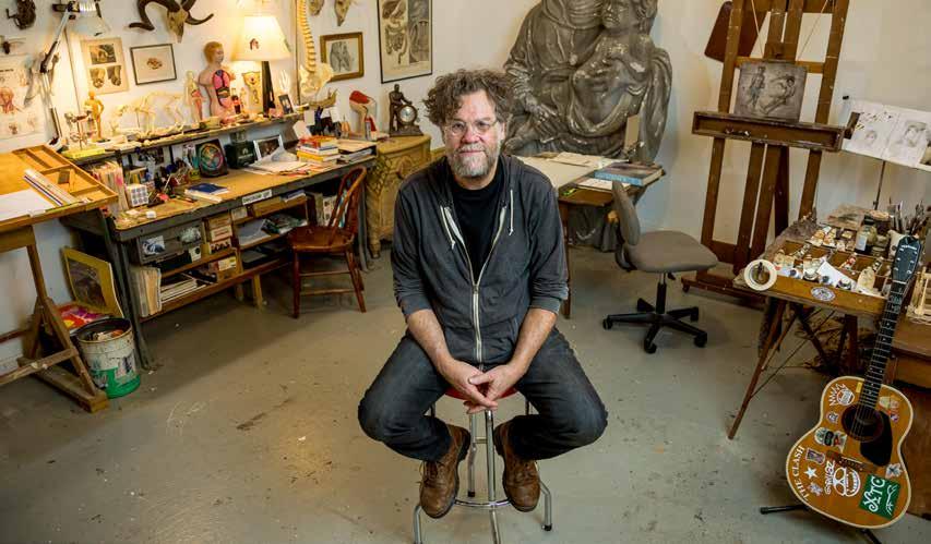 Most of his work is made in his Mount Juliet studio. Filled with memorabilia from his journey as an artist — the medical foot he bought on the street in New York when he was illustrating medical drawings, the large-scale gargoyle he sculpted for his first gig for the Tennessee Repertory Theater (now the Nashville Rep) — it’s where he is free to express himself in a way he wasn’t encouraged to as a child.