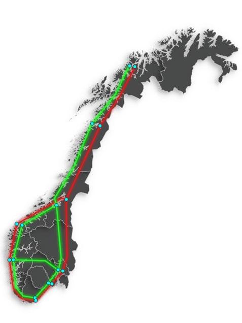 Nasjonale transportnett blir gjerne delte inn i nivåa lands-, region- og lokalnett (sjå figur 1a og 1b). Dei landsdekkande aktørane har landsnett som bind saman regionnetta og sørgjer for høgkapasitetsforbindingar over dei lengste avstandane. For dei største transportnettaktørane i Noreg går landsnetta nordover til Tromsø, der dei vidare mot nord nyttar region- og lokalnett.