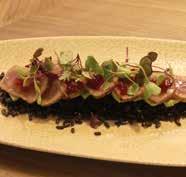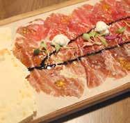 Carpaccio de costella de vaca madurada amb vinagre balsàmic i gelat de mostassa.