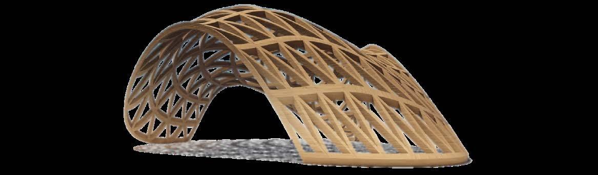 Installation of a parametric shelter with a Grid Shell structure with an area of 25 sqm. An introductory level product on exploring and implementing parametric methods for form finding, developing surfaces of a series of lines that form an irregular 3D geometry.