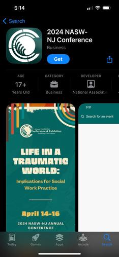 Navigate to your phone’s app store (Apple or Google Play Store) and search for “NASW-NJ”