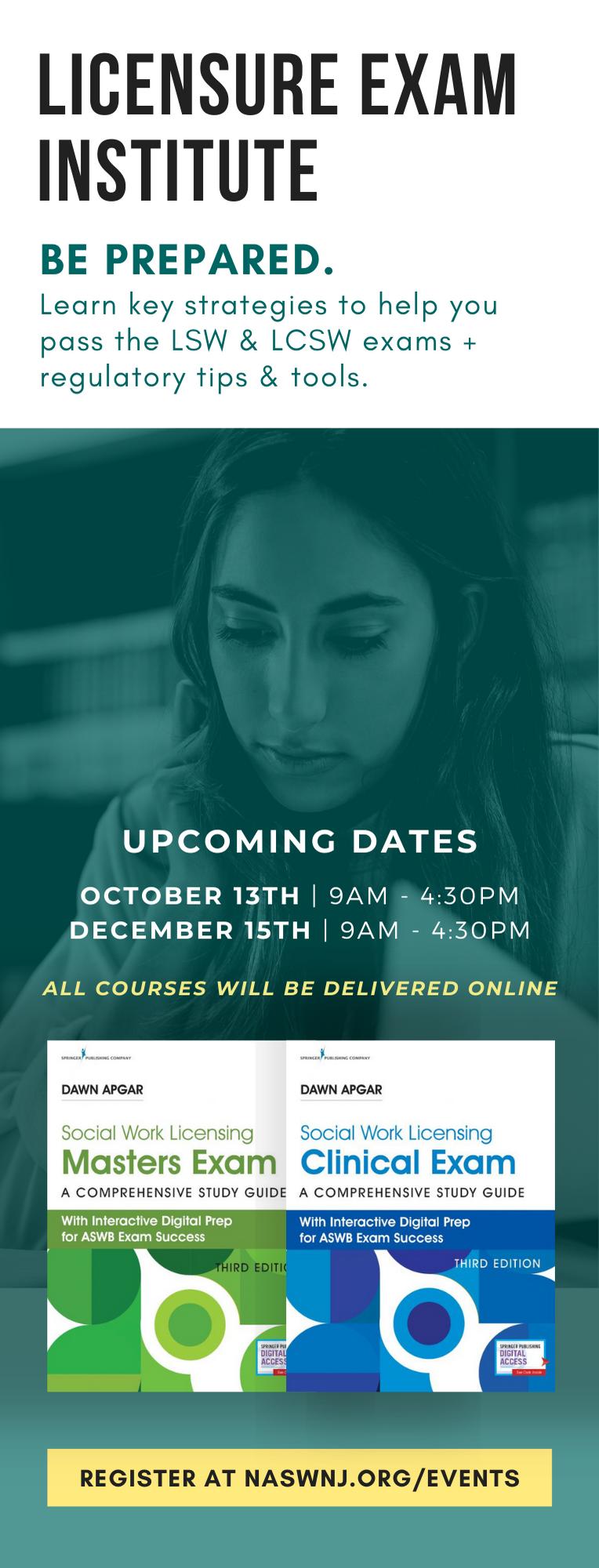 NASW–NJ CHAPTER OFFICE 100 Somerset Corporate Blvd 2nd Floor, Bridgewater, NJ 08807, Ph: 732.296.8070,