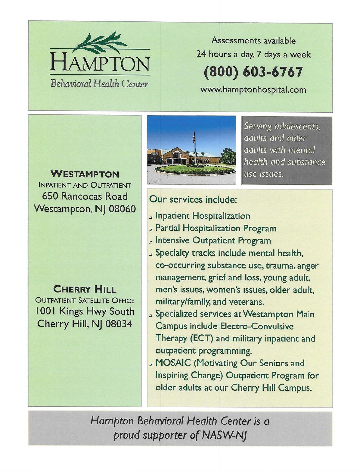 A special mention to Hampton Behavioral Health Center, one of our 2024 NASW-NJ Annual Conference Gold Exhibitors