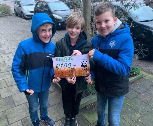 Rangers Ian, Olivier en Jochem (alledrie 10 jaar) hebben de afgelopen tijd plastic flessen opgehaald en ingeleverd. Ze hebben hiermee € 100 opgehaald voor WWF. Supergoed!