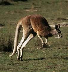 Het grootste buideldier is de RODE REUZENKANGOEROE. Het is ook de snelste. Hij heeft gespierde achterpoten met lange voeten. Daarmee stuitert hij over de vlakte. Reuzenkangoeroes kunnen ook gemeen trappen. De vrouwtjes doen dat naar vijanden, de mannen doen het ook tegen elkaar. Zij hebben op hun buik ook geen kwetsbare buidel met een baby, maar een extra taaie huid.