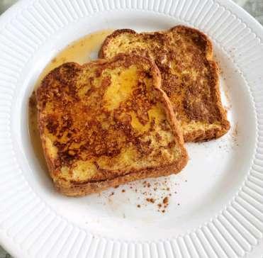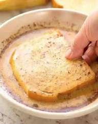 • Leg twee boterhammen in het mengsel en laat ongeveer twintig tellen intrekken