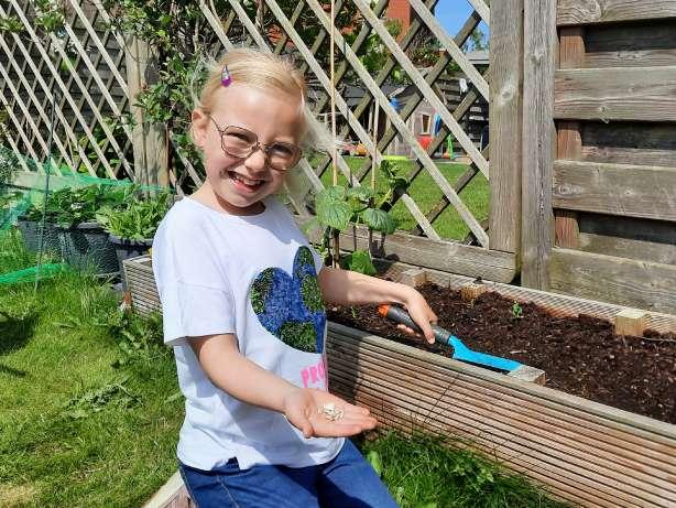 Dag Rangers, ik ben Maya en ik heb zonnebloempitten gezaaid in onze moestuin. Ik hoop dat de bijen straks genoeg nectar vinden voor hun baby’s, want bijen zijn heel belangrijk. Stiekem hou ik ook wel van de kleur van zonnebloemen. Hopelijk kom ik met mijn foto in het Rangerclub Magazine. Groetjes, Maya (de Bij)