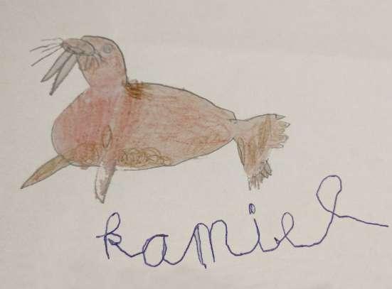 Deze stoere walrus werd getekend door Ranger Kamiel (6 jaar).