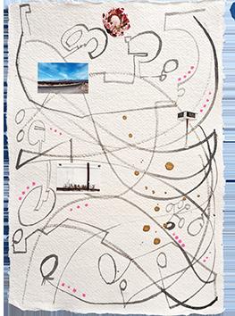 Mixed media on paper over collage with dark wood frame 21x27 cm - 63x63 cm framed - Berlin 2021