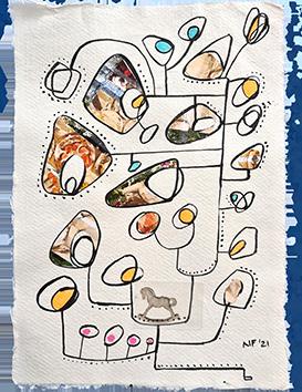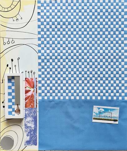 Top left: The garden is yawning. Framed with collage background. Total dimensions 35x45 cm