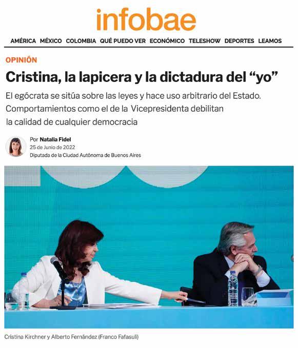durante una de las peores crisis colectivas de nuestra historia. Como he mencionado en artículos de opinión que he publicado durante el 2022, si tenemos en cuenta esta realidad no puede sorprendernos que desde 2020 a CFK se le haya escuchado mencionar más la palabra “lawfare” que la palabra “pobreza” o que el sistema político en general haya discutido más la palabra “grieta” que la palabra “acuerdo”. Estoy segura que si hiciésemos una consulta entre todos los dirigentes políticos la abrumadora mayoría creería que es más importante lograr un “gran acuerdo nacional para eliminar la pobreza” que “incrementar la grieta para evitar el lawfare”.