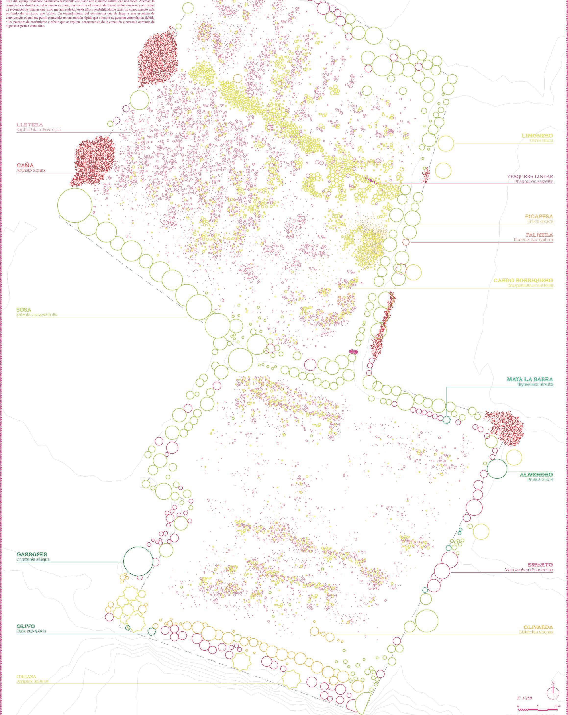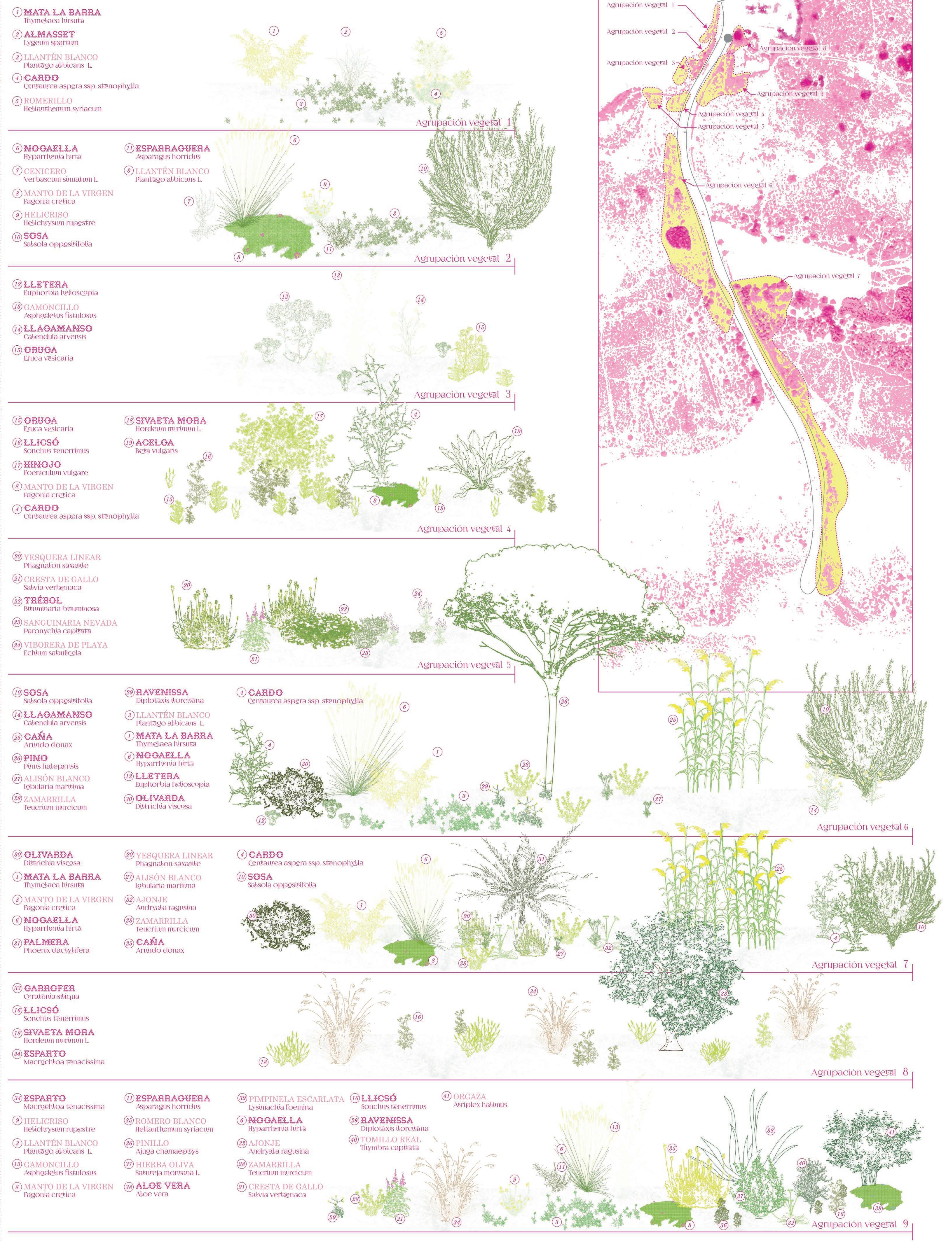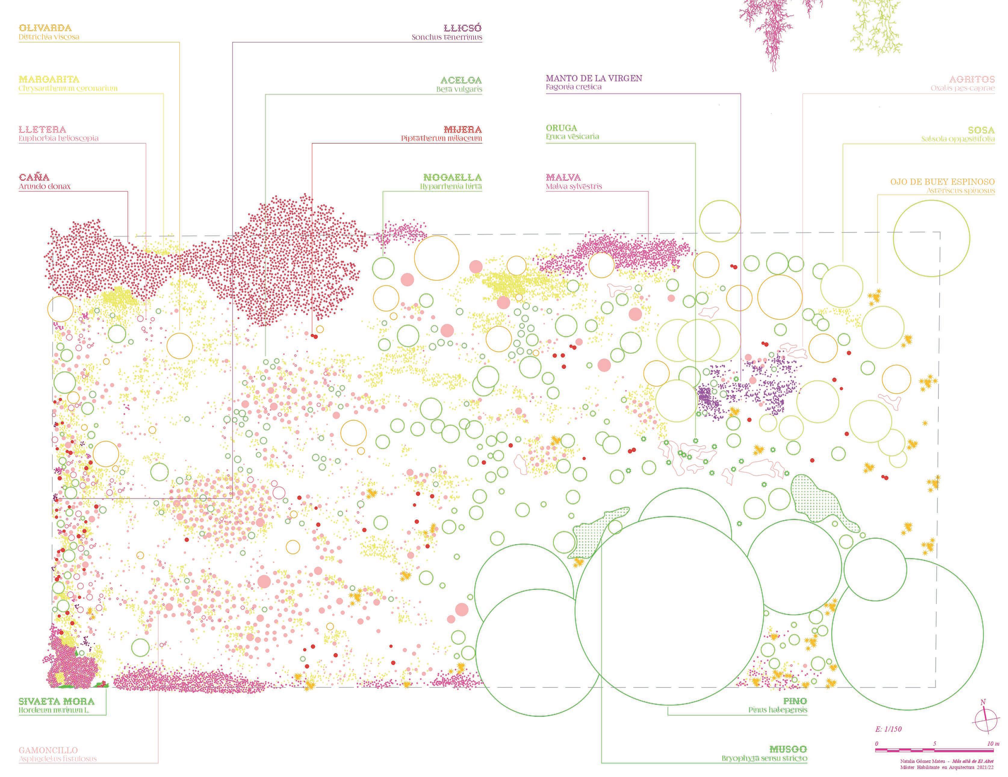 A pesar de que el entorno urbano de El Altet actualmente se parece más a un barrio de periferia que a una zona rural, todavía existen ecosistemas muy ricos en biodiversidad y extremadamente diferentes entre sí que nos permitirán entender qué especies habitaron en su día el terreno que ahora se ha construido. De esta búsqueda por entender las relaciones que alguna vez existieron nacen las siguientes cartografías. Entre ellas, podemos diferenciar una cartografía a escala territorial de cada ecosistemas existentes que nos permite entender qué tipo de vegetación predomina: arbolada, matorral o herbácea. Dichas visiones territoriales se complementan con una cartografía mucho más detallada de las especies vegetales existentes
