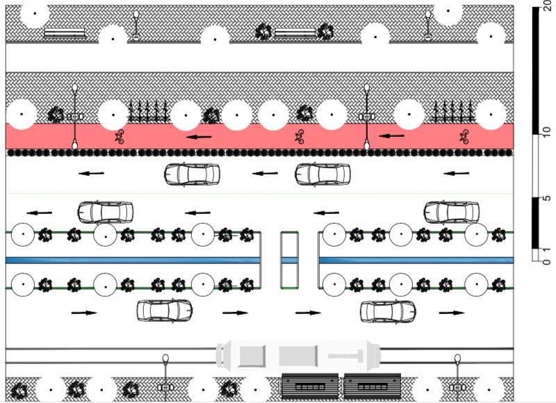 Com a ocupação se estendendo a leste, a comunidade vai ficando cada vez mais distante de serviço de transporte público e com vias mais precárias, impedido a comunidade de ser atendida com serviços básicos de in raestrutura. A partir disso pensamos, e se osse criada uma rande avenida que além de conectar a comunidade a cidade e a suprisse de serviços básicos como transporte público com uma linha de VLT e uma ciclo aixa por toda sua extensão, ainda preservasse o i arapé e sua ve etação, que limita a ocupação?