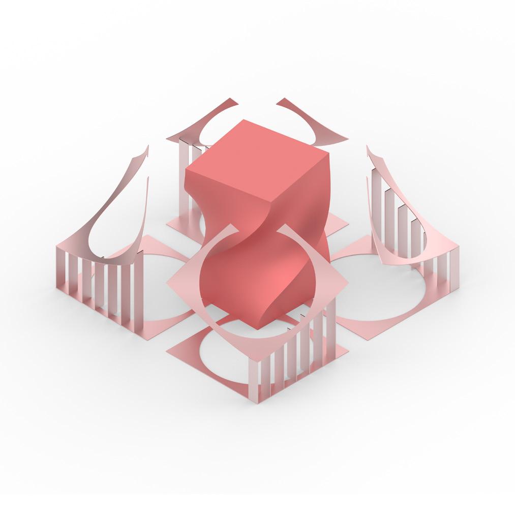 As interpretations of the primitive figures, these physical models convey the aforementioned action verbs in 3D. These objects are constrained within the bounds of a pyramid, a tower, a plate, and a cube, respectively.