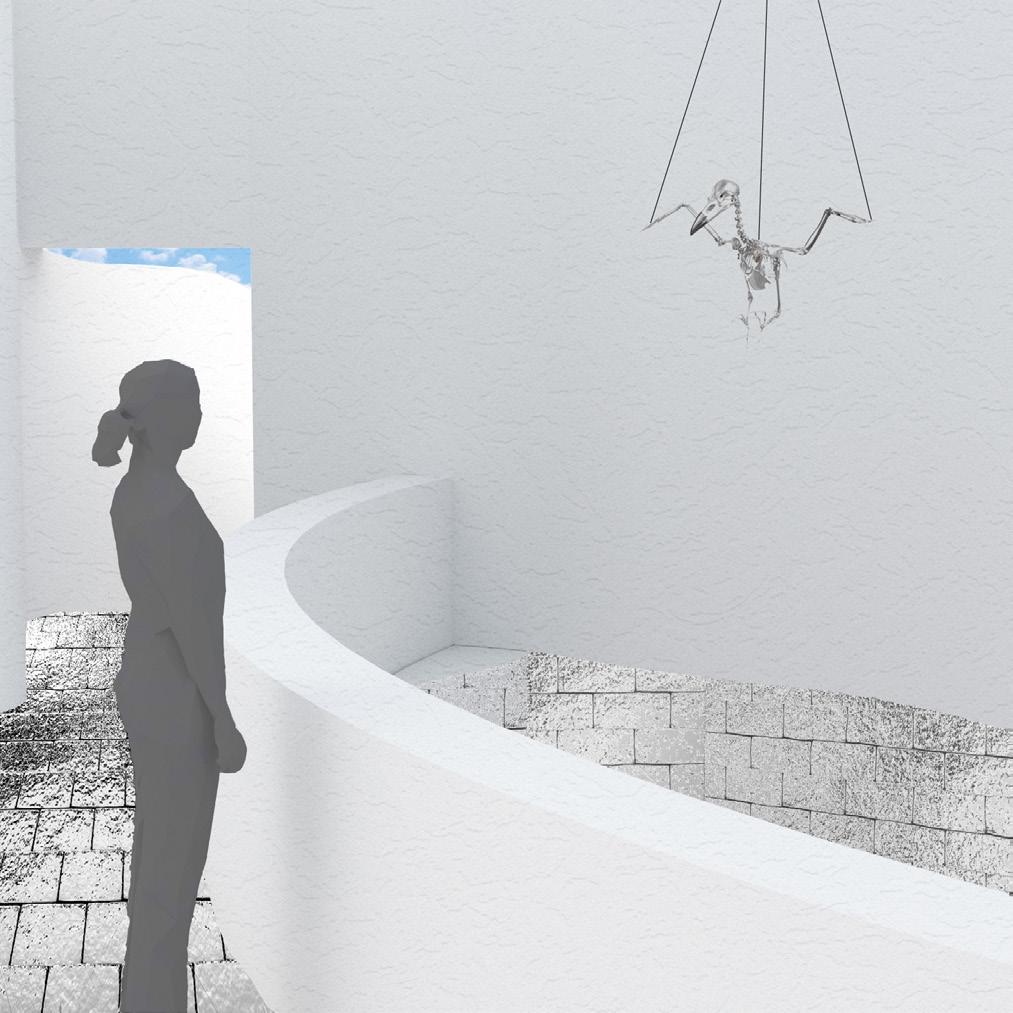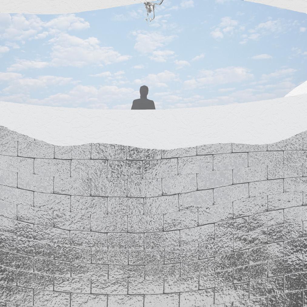 Intersecting pathways guide the spectator to and through the pavilion. On these pathways, there is never a moment when the walls are less than 8’, causing the spectator to remain focused on the journey and what lies ahead, physically and existentially. Undulating walls begin to constrict toward the center of each level, urging the viewer to circulate the space.