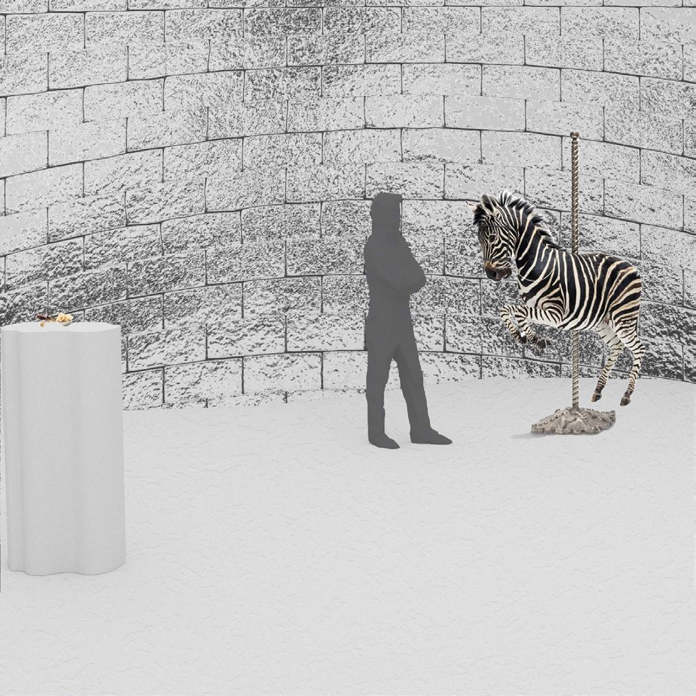 This pavilion displays five semi-metallic taxidermy objects created by artist Julia deVille. Based on deVille’s philosophy of accepting mortality in order to fully appreciate life, the experience promotes existential contemplation through bright, open, and reflective spaces, as well as through several curving paths and changes in elevation that mimic life’s unpredictability.