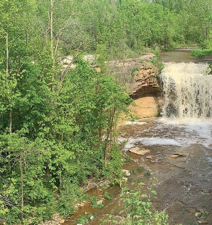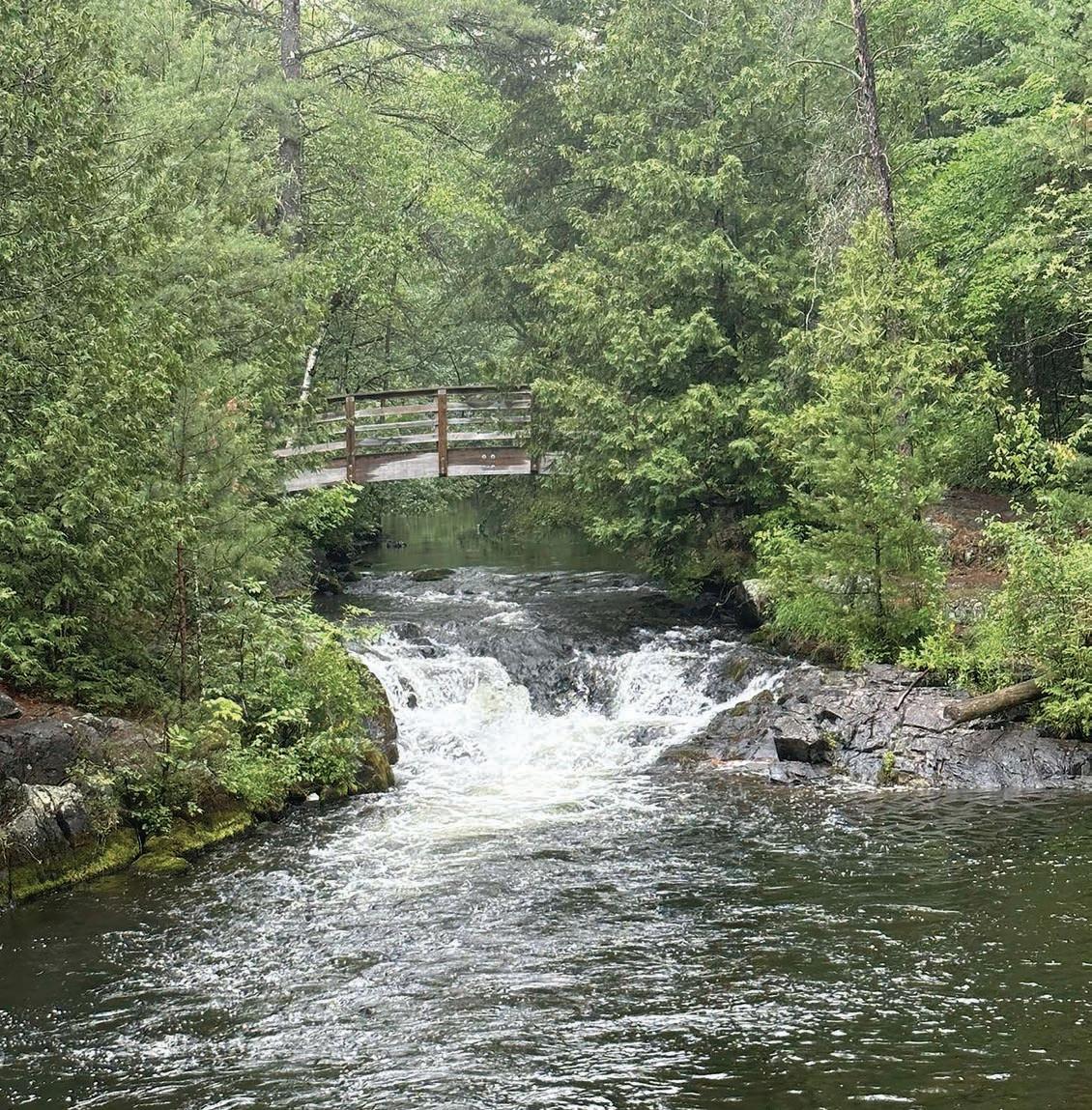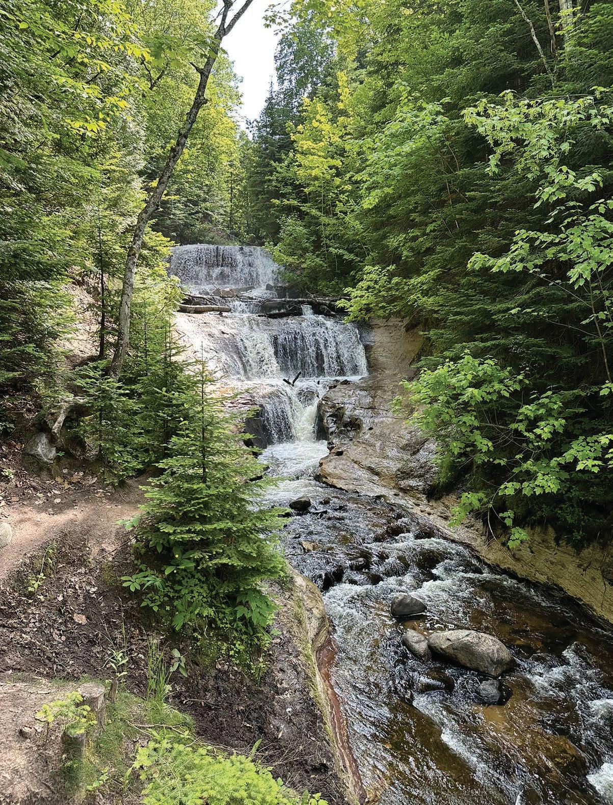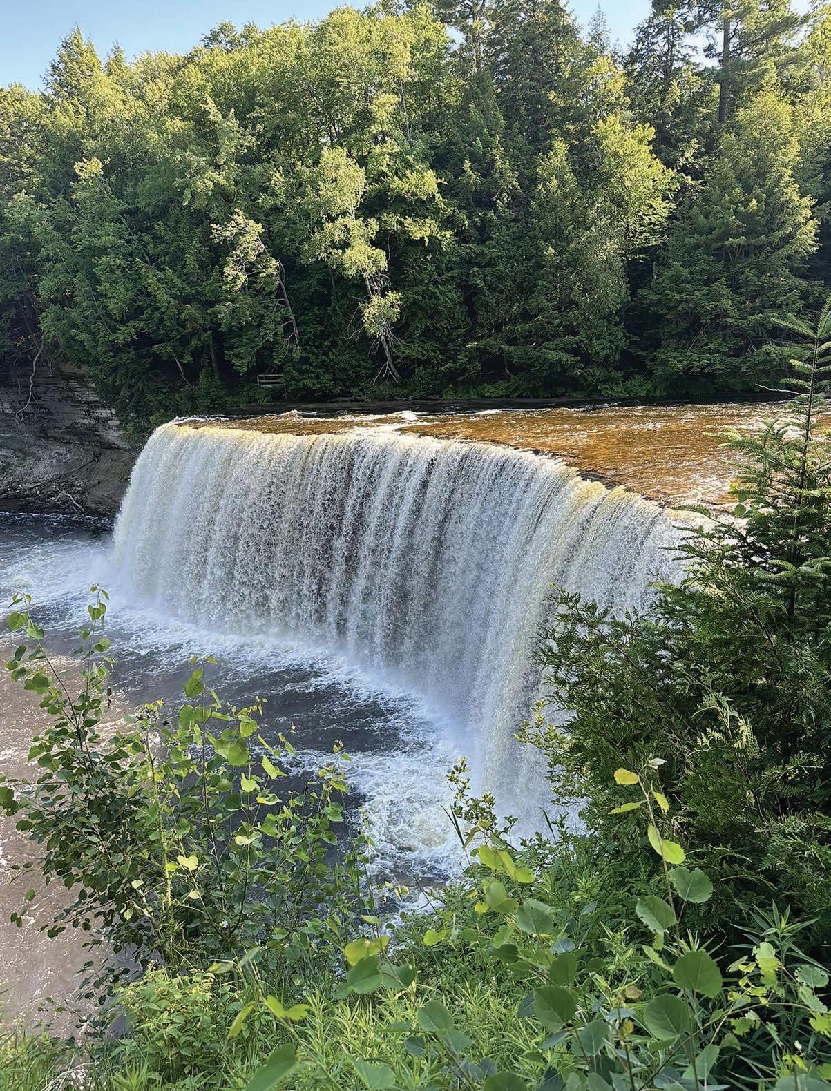 Taquamenon Falls spans 200 feet across with a drop of almost 50 feet.