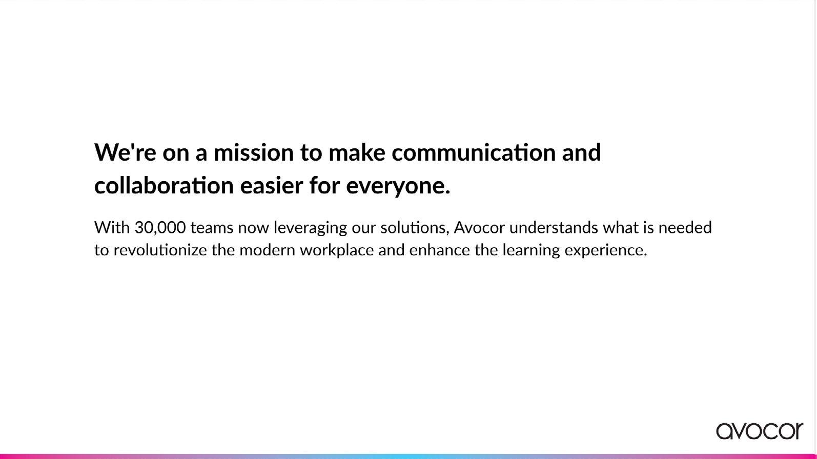 Avocor is a leading provider of communication and collaboration solutions, designed to bring people together in the simplest way. Whether in-person or remotely, our solutions are designed to encourage connection and inspire collaboration in the most efficient and effective way.