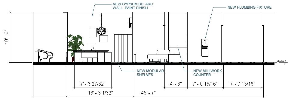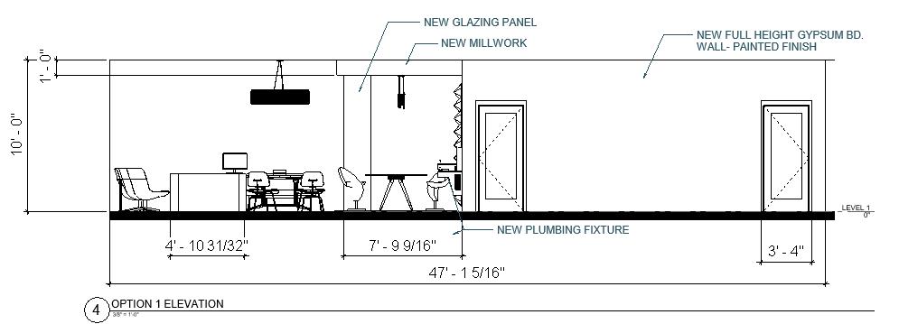 As an introduction to Revit, I was provided with a base model of an office space. Within this model, I selected a 1500 sq. ft. area to modify by introducing new families, setting up design phases, and demolishing existing elements in two different design options. Then, I modified and loaded in new materials to transform the space further before rendering. After rendering through Revit, we were encouraged to explore the capabilites of of Photoshop and other tools to transform the realistic renders in a stylistic way. In addition to these skills, I set up sheets, modified and created new title block families, built custom millwork, created ‘parts’ to allow for different flooring applications, applied room numbers and room separators, used masking regions, and set up section and elevation views.