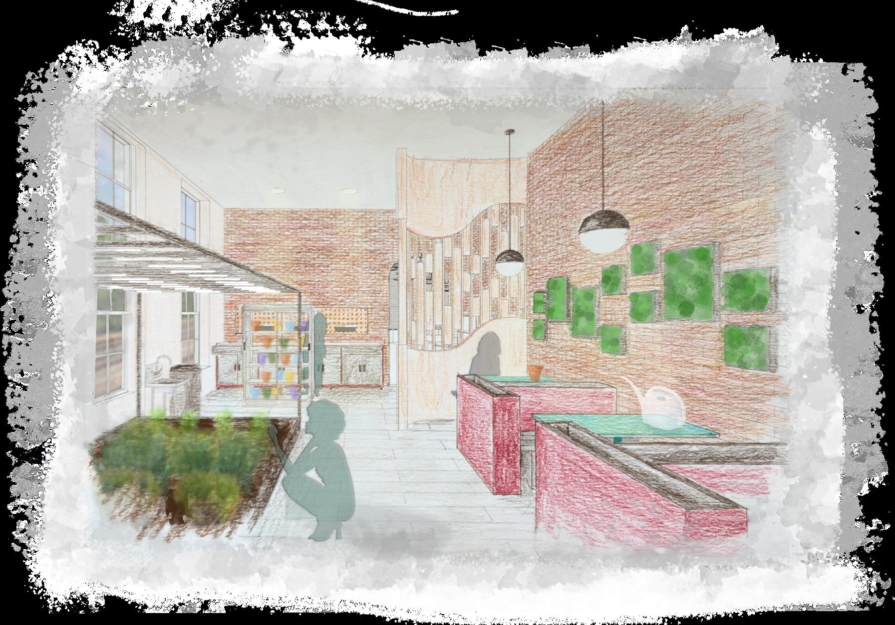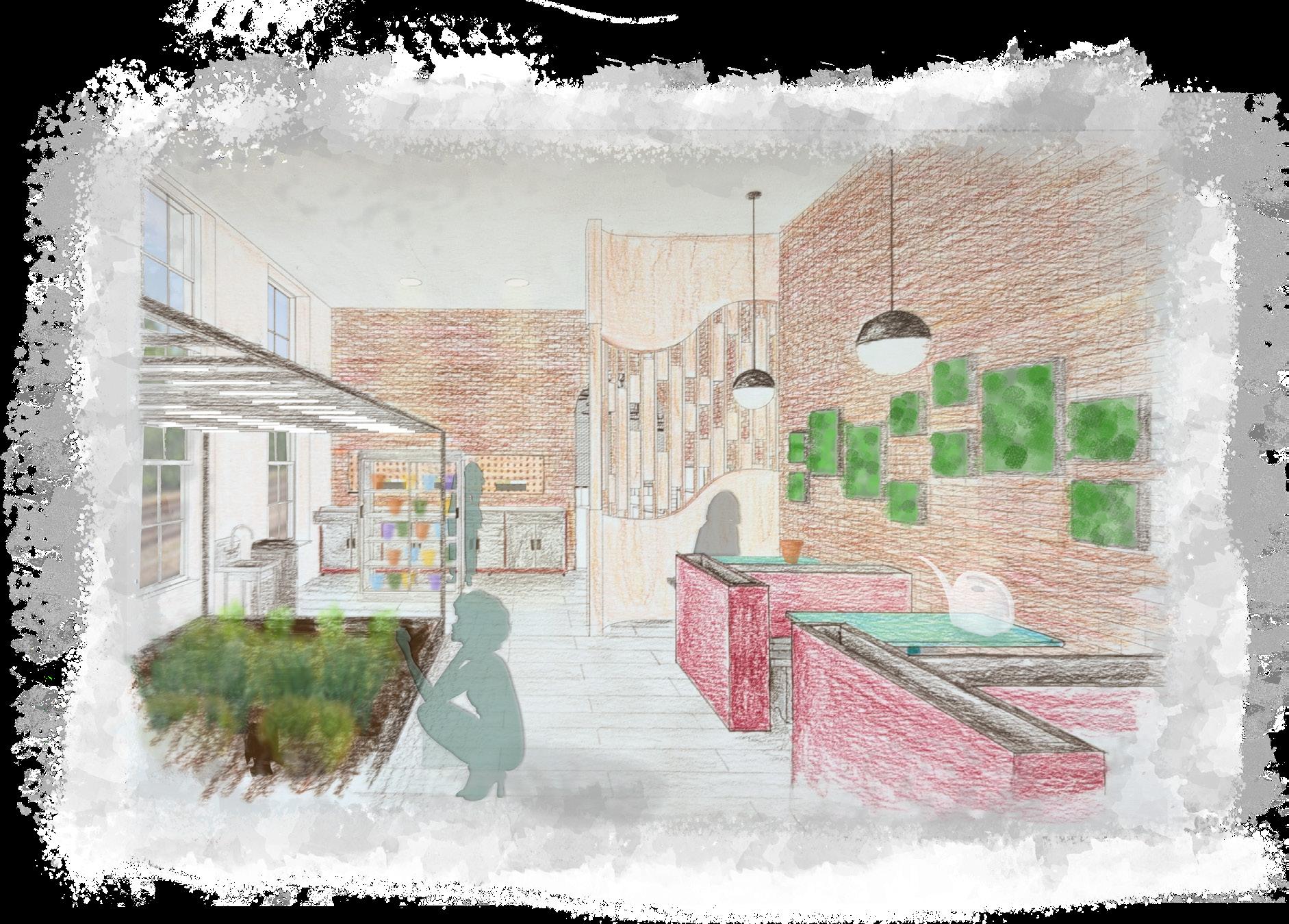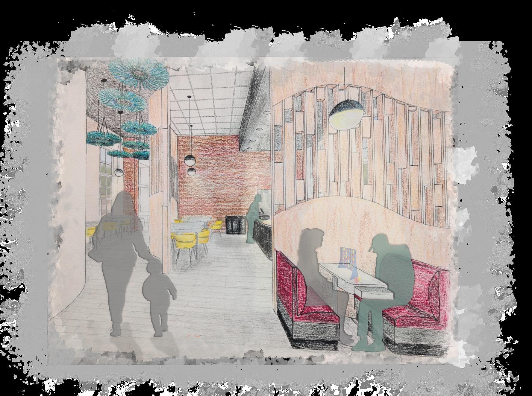 As technology continues to evolve and consume our daily lives, the negative effects associated with it become more evident. Human interaction has become distant and lost its sincerity through the everpresent ability to hide behind a screen without repercussions. This project tasked me with taking the Kent Train Depot, currently the Over Easy at the Depot breakfast restaurant, and repurposing it back into a train station, imagining that high-speed train travel is present and accessible in the United States. While considering human connection and mentorship, “Beyond the Screen” Train Depot will aid in bridging the gap between older and younger generations and promote socialization by addressing varying types of interpersonal connection through analog activities.