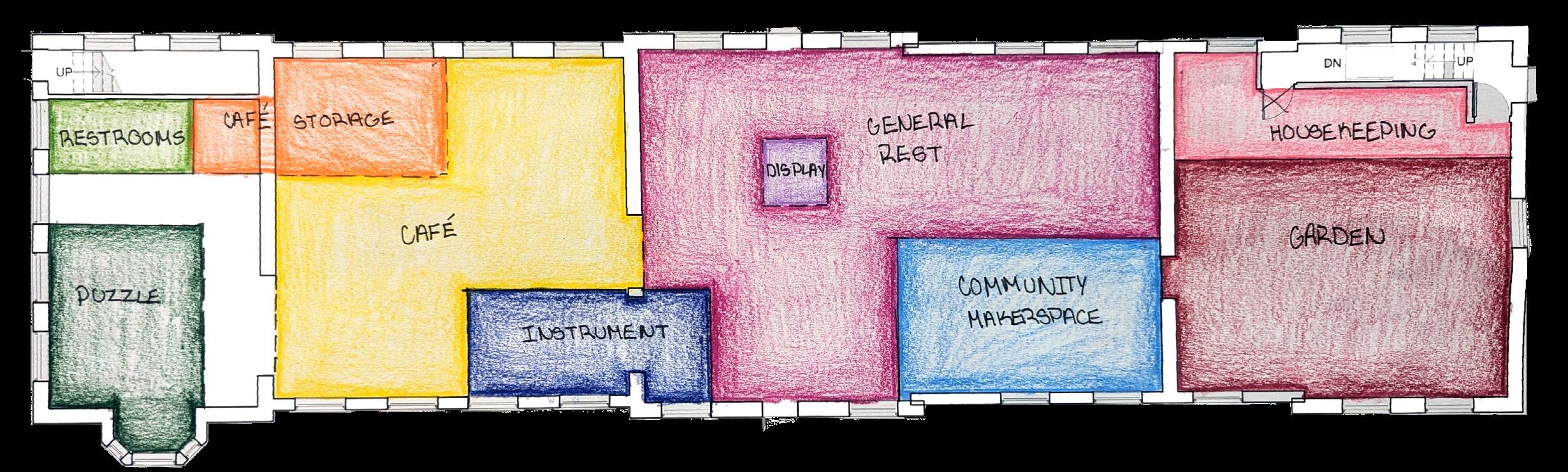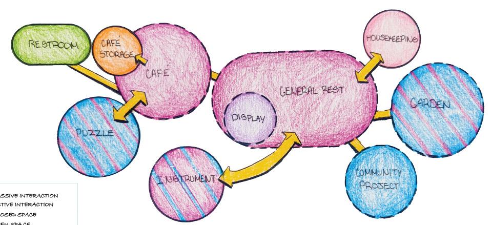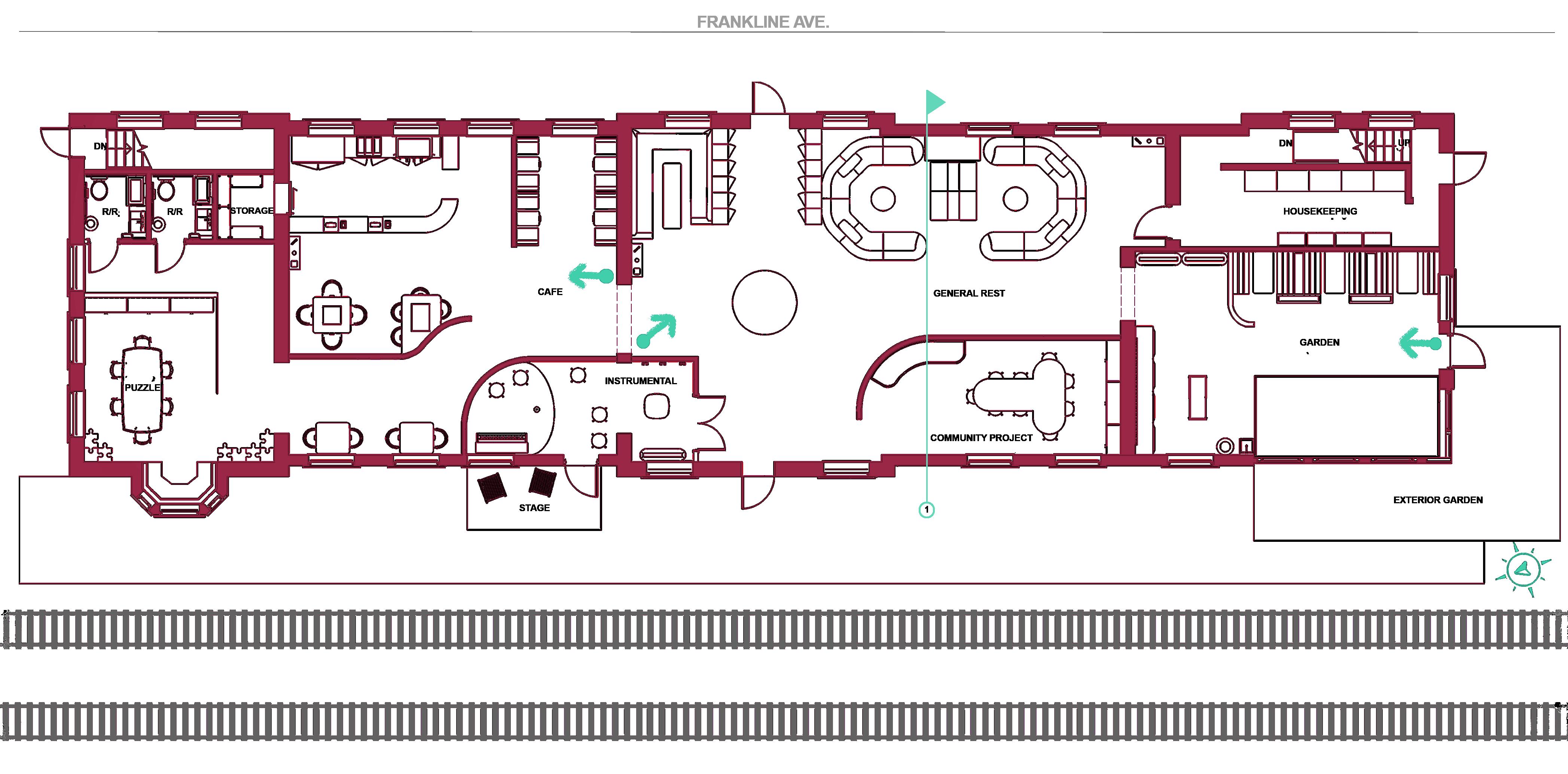 As technology continues to evolve and consume our daily lives, the negative effects associated with it become more evident. Human interaction has become distant and lost its sincerity through the everpresent ability to hide behind a screen without repercussions. This project tasked me with taking the Kent Train Depot, currently the Over Easy at the Depot breakfast restaurant, and repurposing it back into a train station, imagining that high-speed train travel is present and accessible in the United States. While considering human connection and mentorship, “Beyond the Screen” Train Depot will aid in bridging the gap between older and younger generations and promote socialization by addressing varying types of interpersonal connection through analog activities.