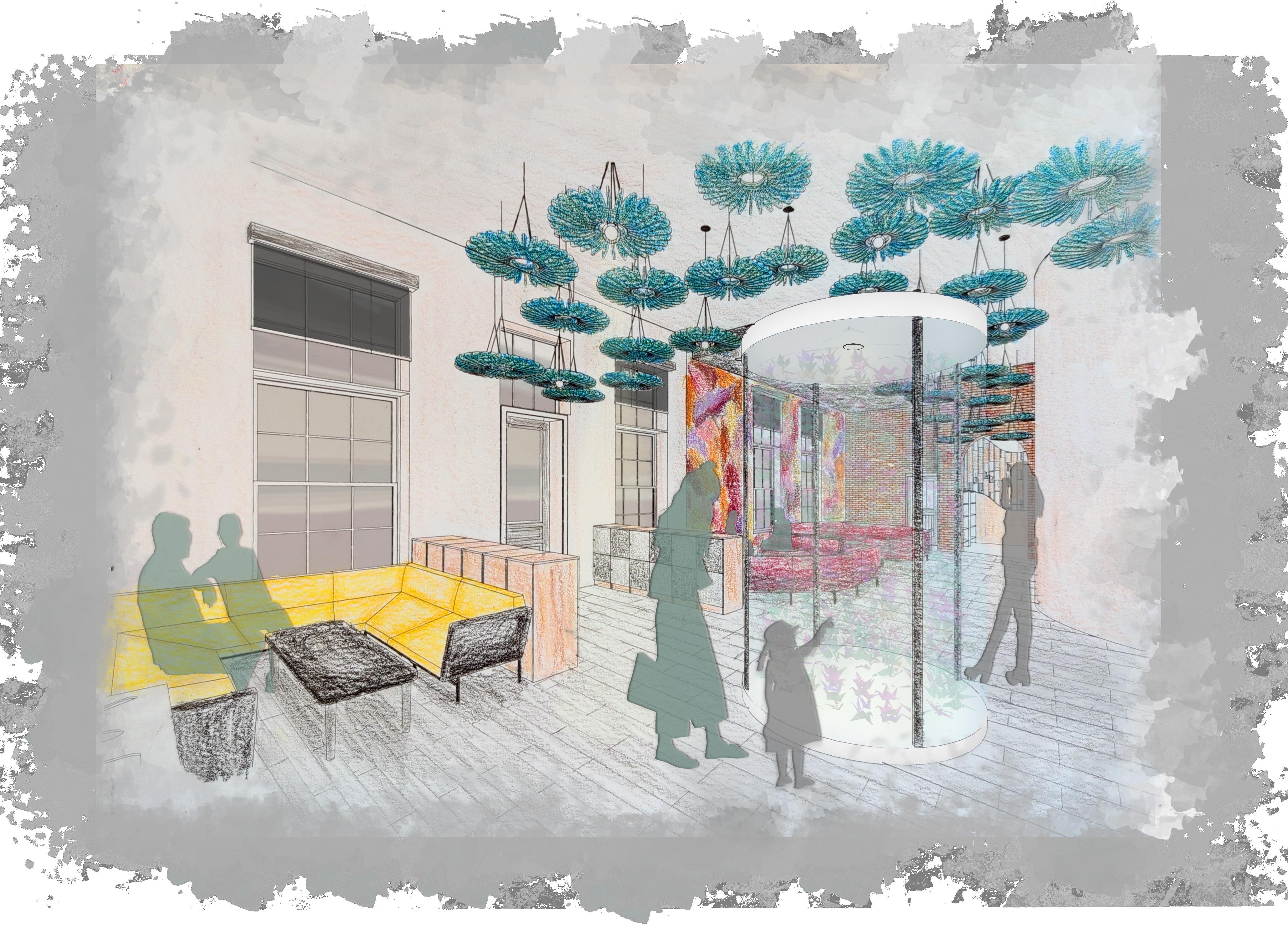 wanted this glassblowing shop to accentuate that unique feature. Most traditional communities are very individualistic, with people communities are such a dichotomy to that, and it inspired me to blow glass, but also enjoy the process and feel like they can be a part of if in more sensory friendly ways. Visitors are invited to sit and watch the process for as long as they please and design