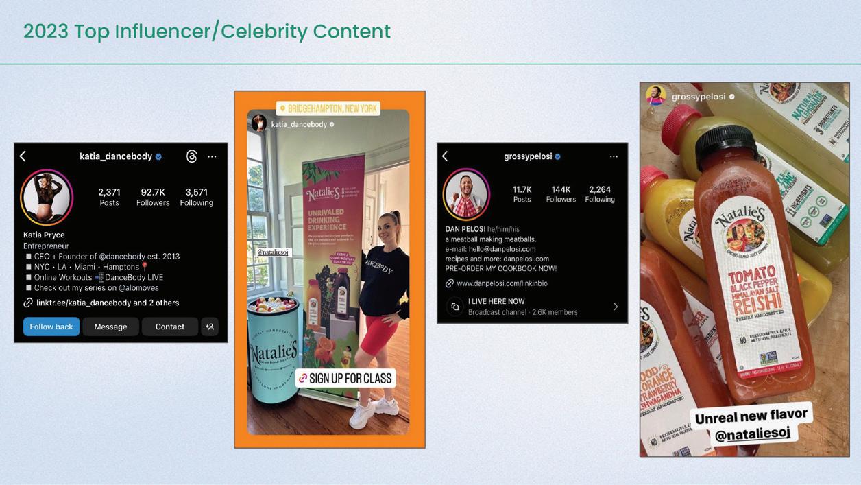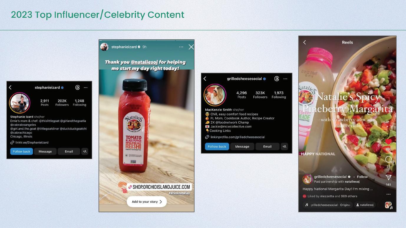 At Natalie’s, we hand select synergistic relationships to amplify brand awareness, engage consumers, and drive demand. We activate specific audiences through impactful events, brand collaborations, and social friendships to help develop & build our brand story at scale. We provide authentic, award-winning juices to partners world-wide & they’ve got something to say.