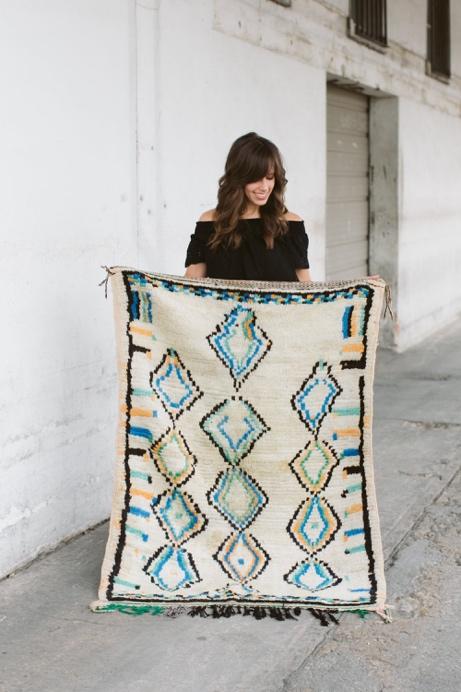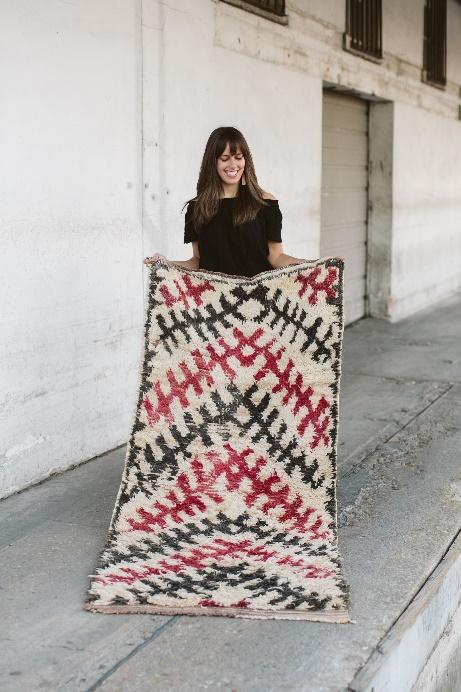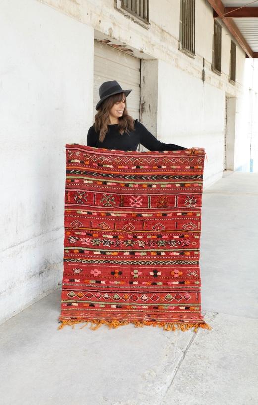 This vintage Beni M'Guild had the most unique pattern and design. The diamond pattern is personalized with tribal motifs randomly placed throughout the bottom 2/3 of the rug. I love the imperfect vibe truly giving a nod to its handmade charm.