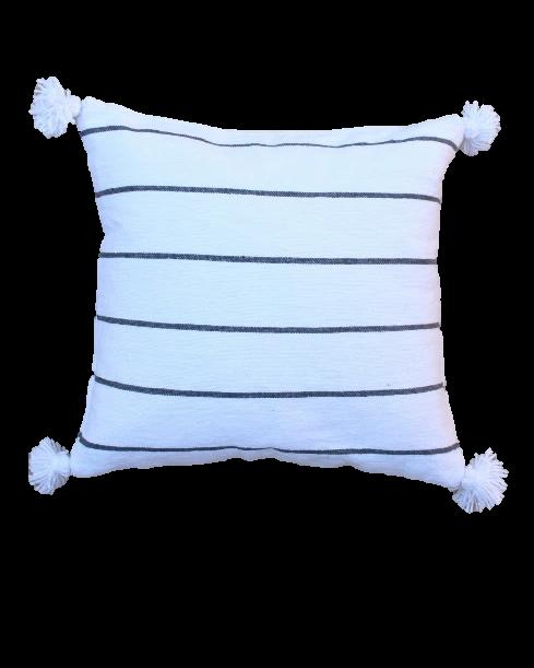 POM POM PILLOW COVER WHITE / CHARCOAL STRIPE
