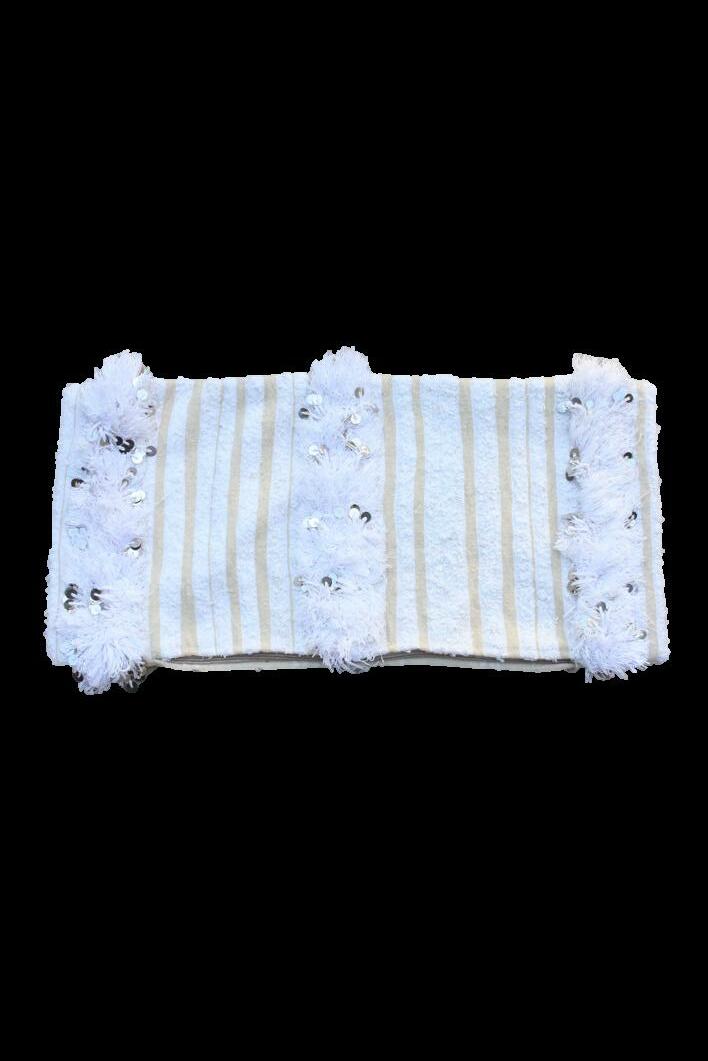 also known as Handira , are handmade wedding garments made by the Brides family for her on her wedding night. Traditionally this sequinned neutral piece was worn by the bride to keep warm and as a symbol of good luck on her new marriage.