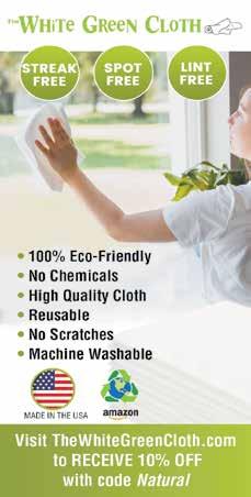 Eco-friendly, reusable and chemicalfree, The White Green Cloth uses water only for sparkling, streak- and lint-free windows and mirrors. Machine wash. Money back, three-year warranty. See ad page 33.
