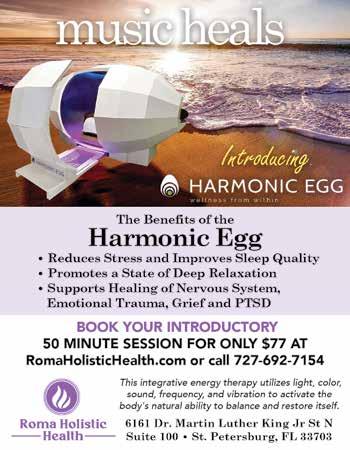 Roma Holistic Health is located at 6161 Dr. Martin Luther King St. N., Ste. 100, St. Petersburg. Call 727- 644-0466, email services@romaholistichealth.com or visit RomaHolisticHealth.com. See ad, page 19.