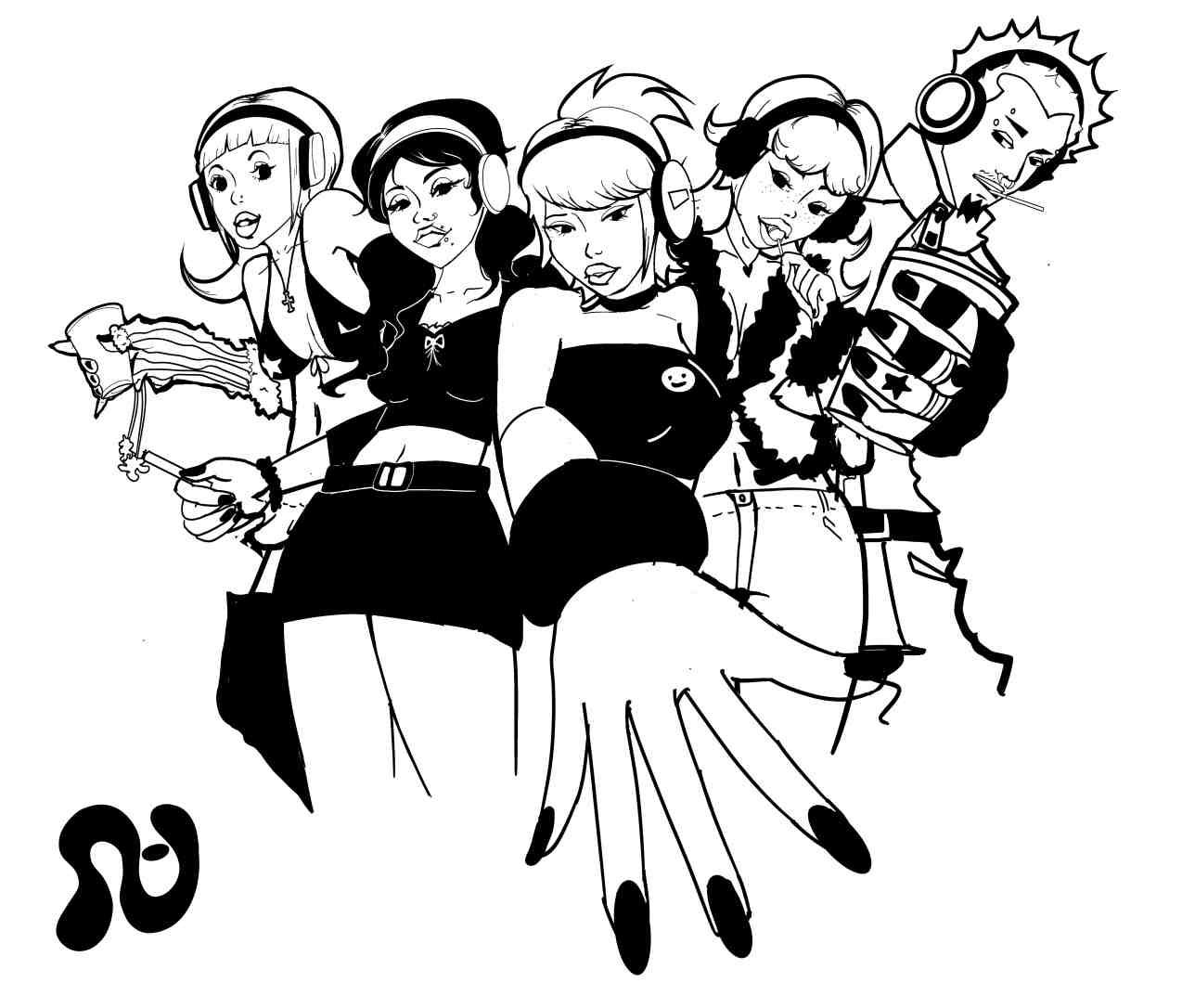 misc. illustrations original sketches and final revision of key artwork featured on the "Beat FM" final project (pg. 9) (2024)