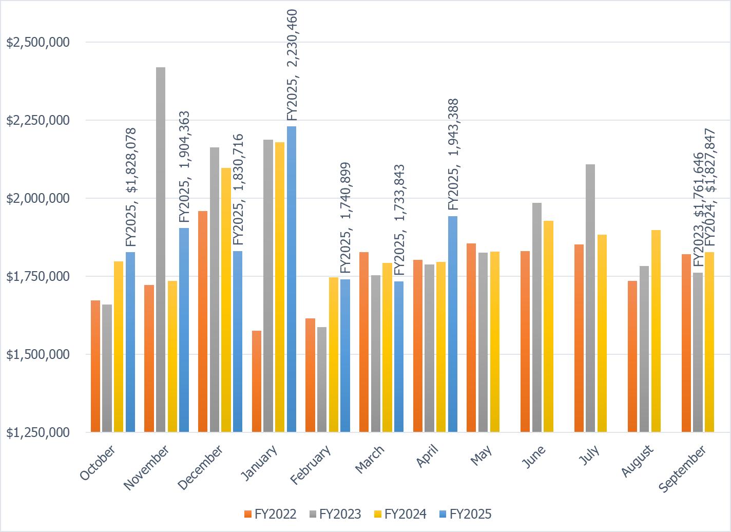 In May 2025, the Cultural Affairs Department welcomed 855 participants across its program offerings, matching April’s engagement. Participation included Dance (287), Music (84), Theatre (88), Visual Arts (183), and Healing Arts (213). This consistent turnout signals strong and steady interest in arts programming citywide. The department remains focused on maintaining this momentum while preparing for summer initiatives and expanding access and participation.