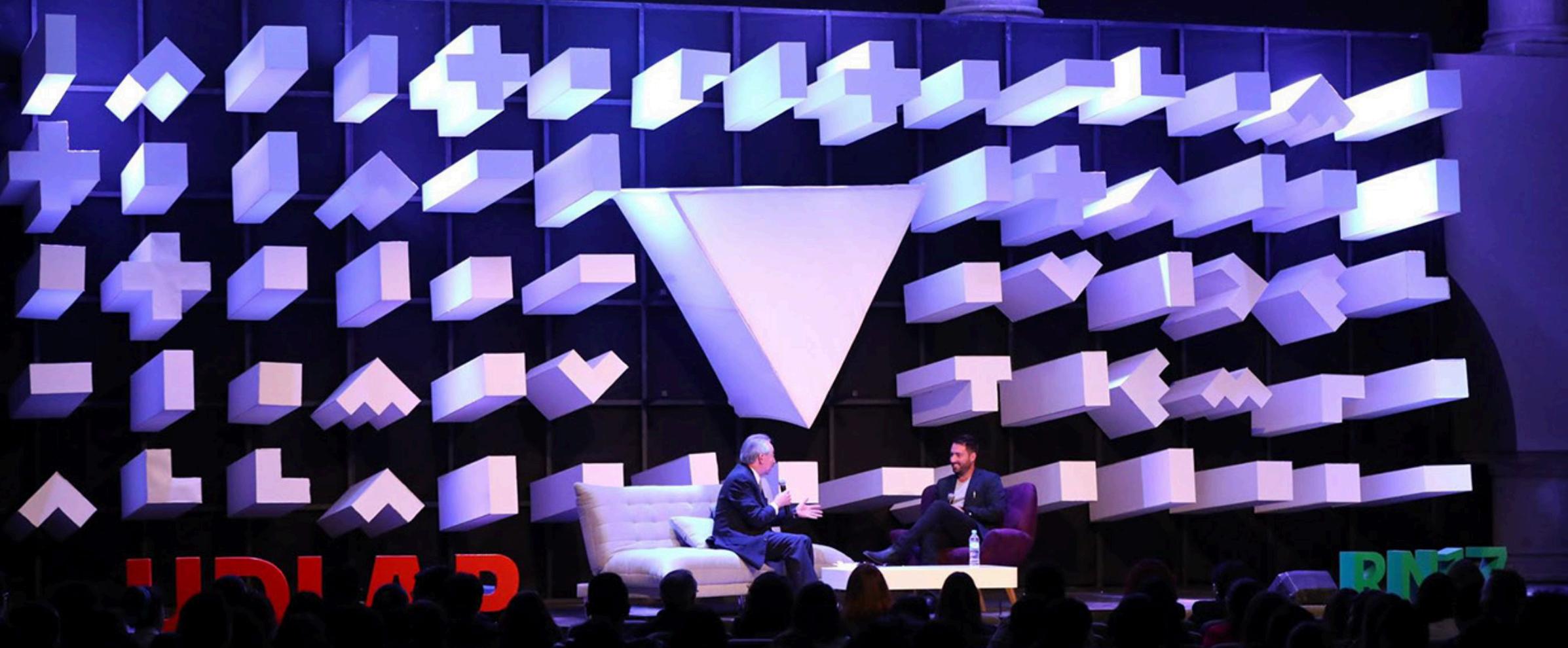 The set design was created specifically for UDLAP’s Annual Business Conference. As the design team, we drew inspiration from the event’s promotional materials—extracting its typography and color palette—and translated them into a three-dimensional stage experience. Through this process, we brought the energy and coherence of the digital graphics into the physical space.