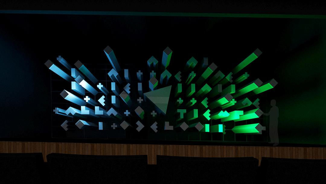 Objective: Design and fabricate a custom stage set for the Annual Business Conference at UDLAP, translating the event’s visual identity into an immersive three-dimensional experience. W