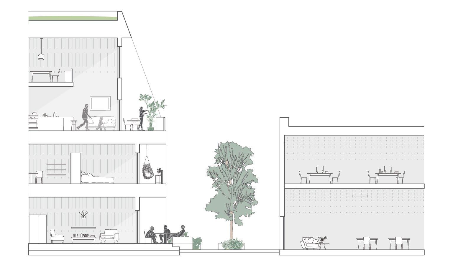 4. New active alley connects public space, housing, retail