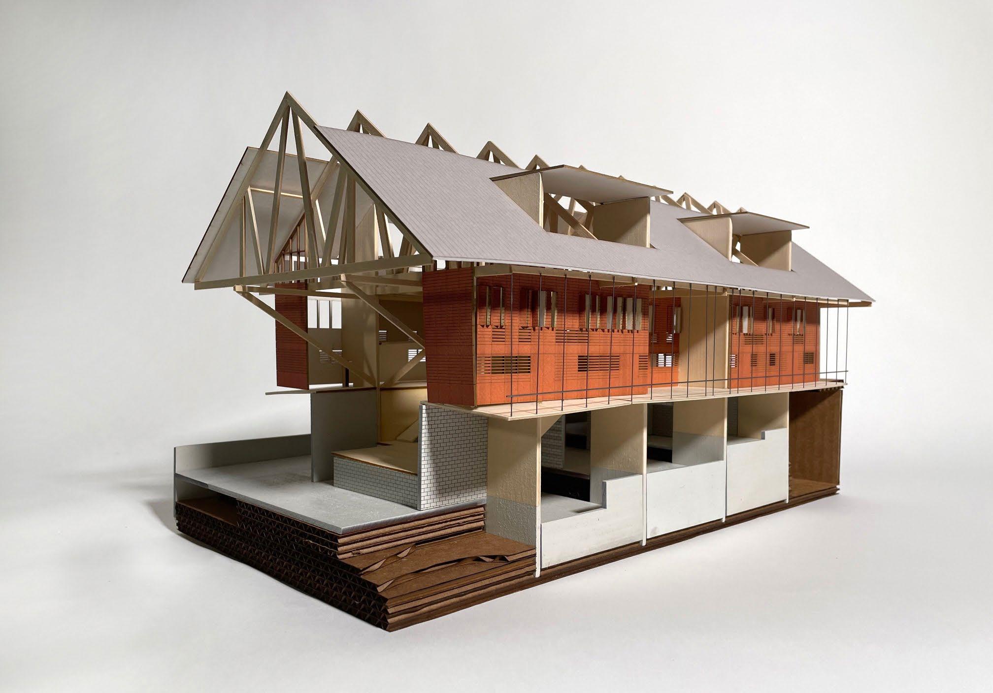 3D printed building in wooden site model