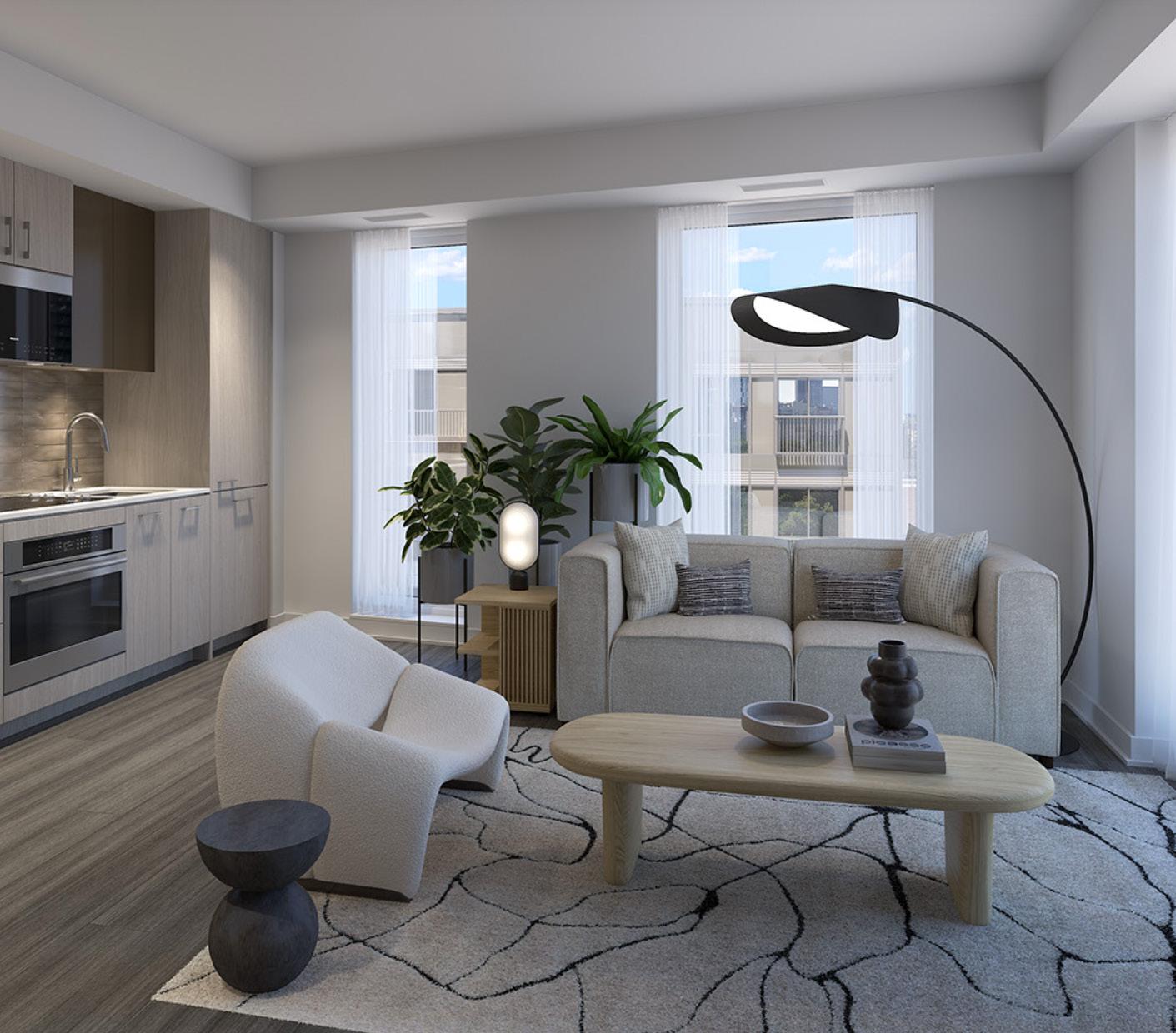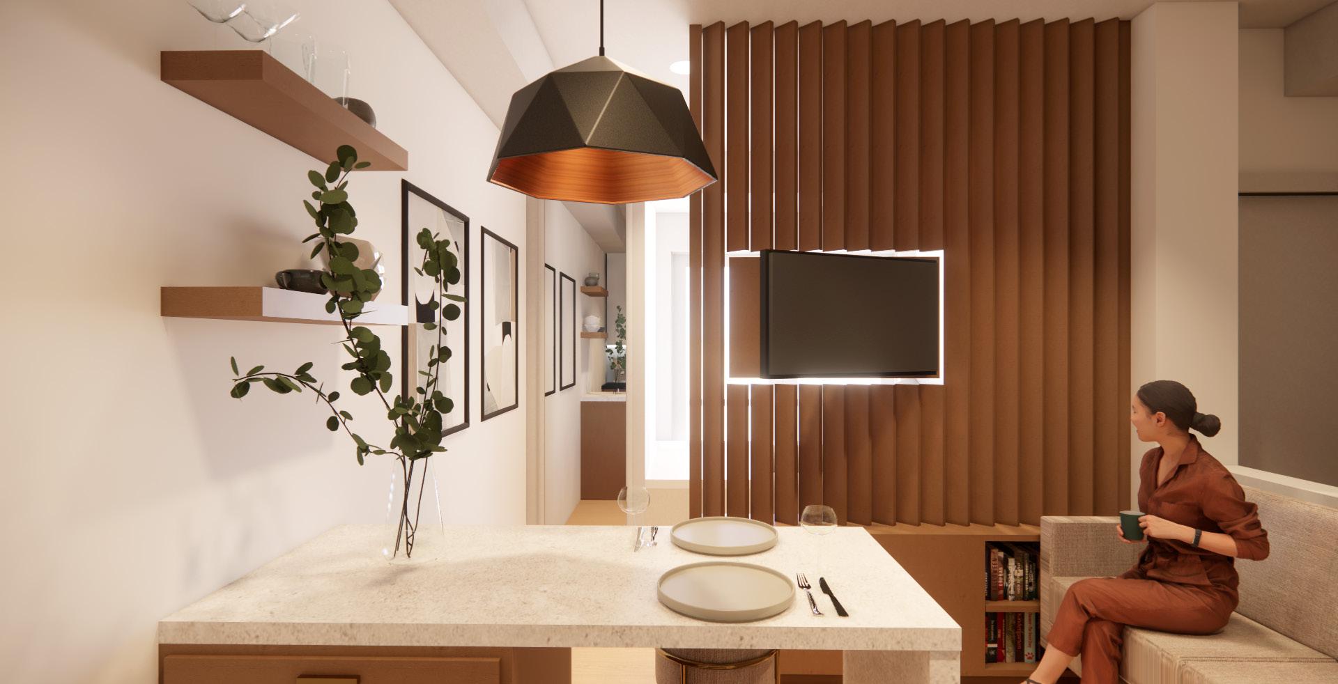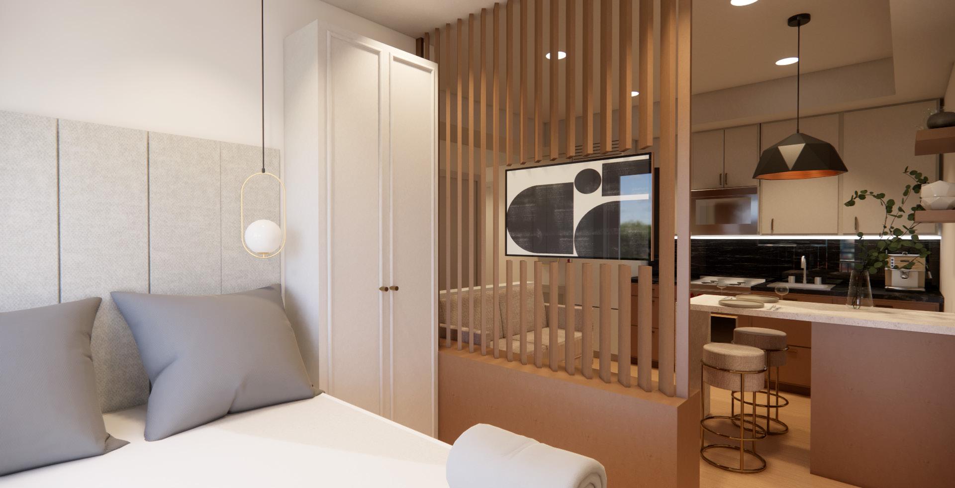 Blending affordability with premium amenities, Daniels on Parliament presents luxury condos in Regent Park. With lifestyles leaning towards compact living, the demand for versatile and hyper-functional spaces is growing. Our studio design maximizes storage, while providing clear separations between the living and sleeping areas and maintains 3 foot clearances throughout. The fixed furniture elements define distinct areas within the studio, offering a sense of permanence and livability without the need for daily setup. We carried the warm and contemporary finishes seen in the shared amenities to create a cohesive design that aligns with the aesthetic of Daniels on Parliament. This studio redefines the concept of home, where innovation and thoughtful space planning overcome traditional notions of size and scale.