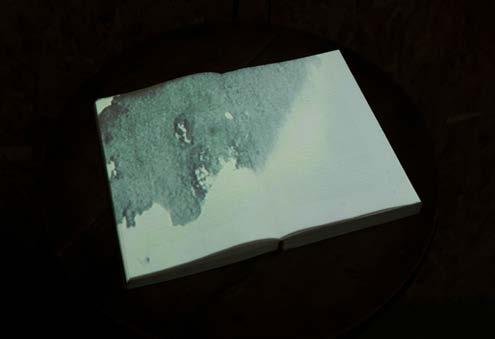 The installation is accompanied by the sound of water, a deep murmur that builds to an overwhelming roar before returning to calm, until the next storm arrives.