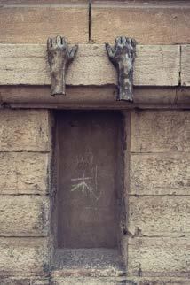 A nocturnal urban mural that reinterprets a piece of architecture, a facade, or a wall with a sense of detachment, simplicity, and poetry. It is a tactile exploration of our urban spaces that emphasizes touch as much as strangeness. Is this thing trying to break free? Giant hands blindly explore the surrounding stone, seeking to grasp the accessible relief in order to comprehend the outside world.
