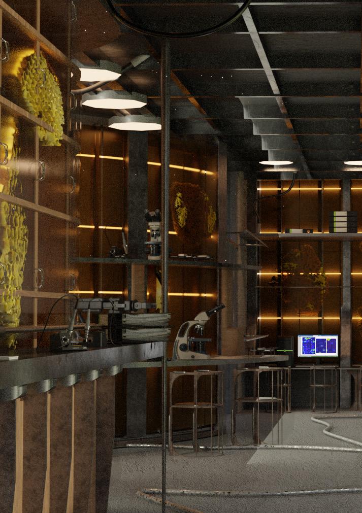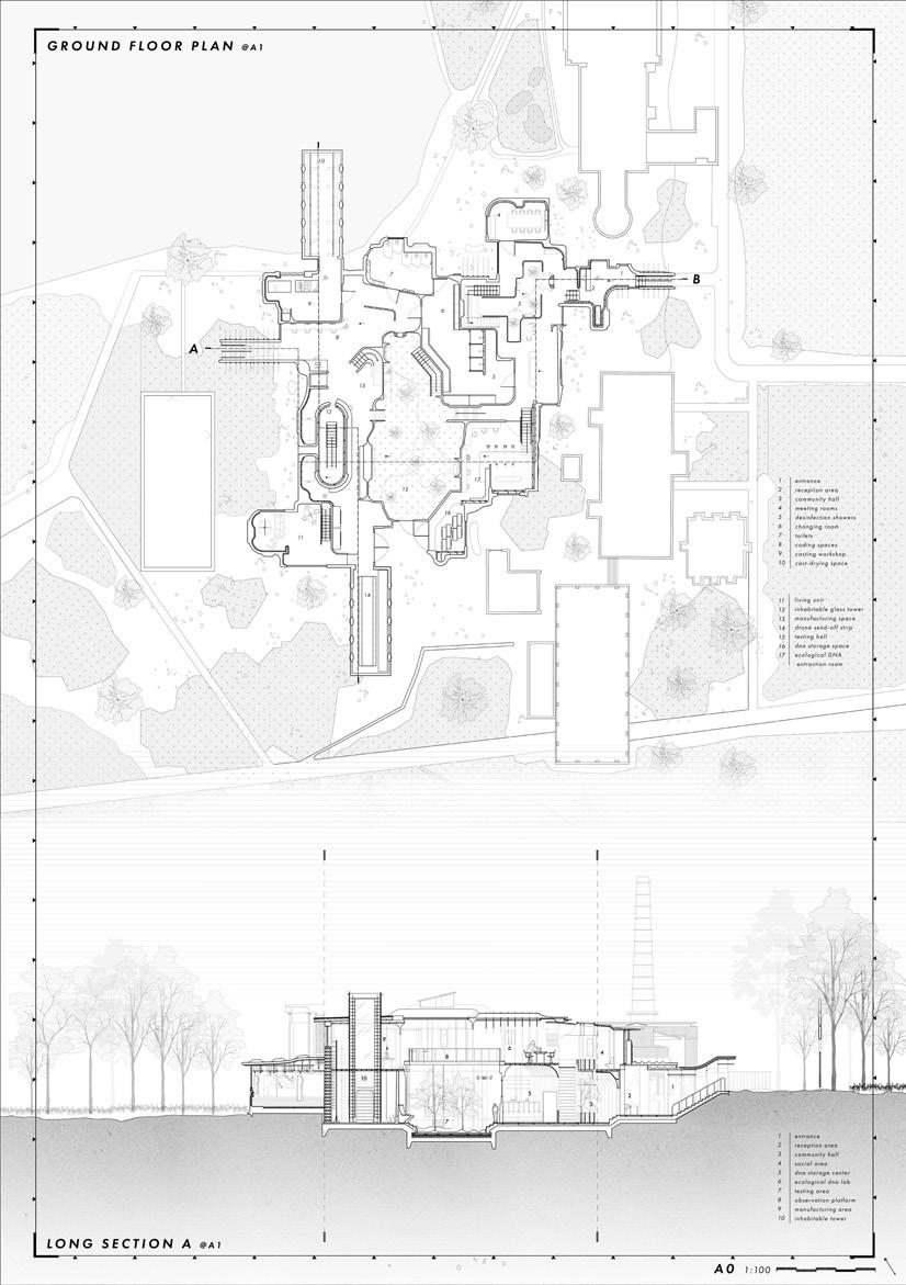 Set in 2035, the proposed project is an ecological DNA research centre and manufacturing facility for robotic bees. While the spaces and programme aim to facilitate for the manufacturing and testing of this new technology, the actual building facades, columns and structures will allow and encourage, through strategic design, the inhabitation of real bees, arguing for the importance of nature preservation and denying the complete prevalence of the digital.
