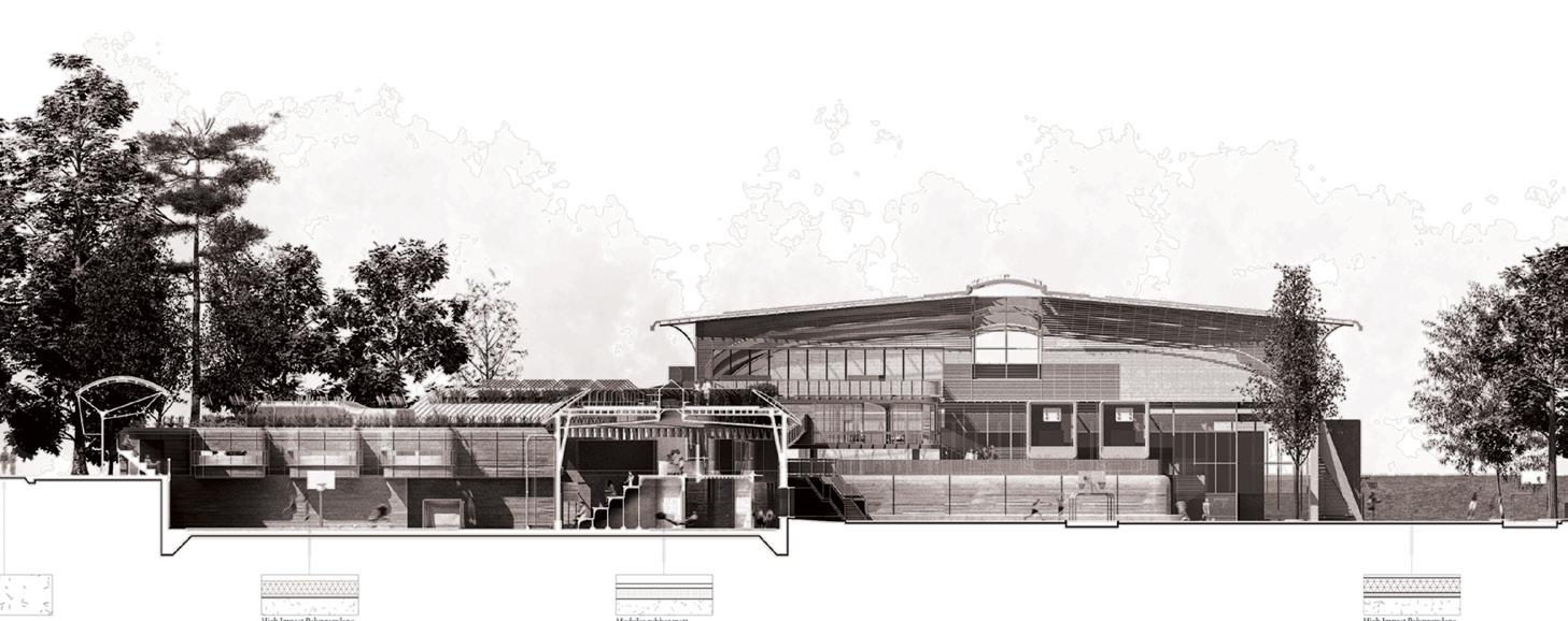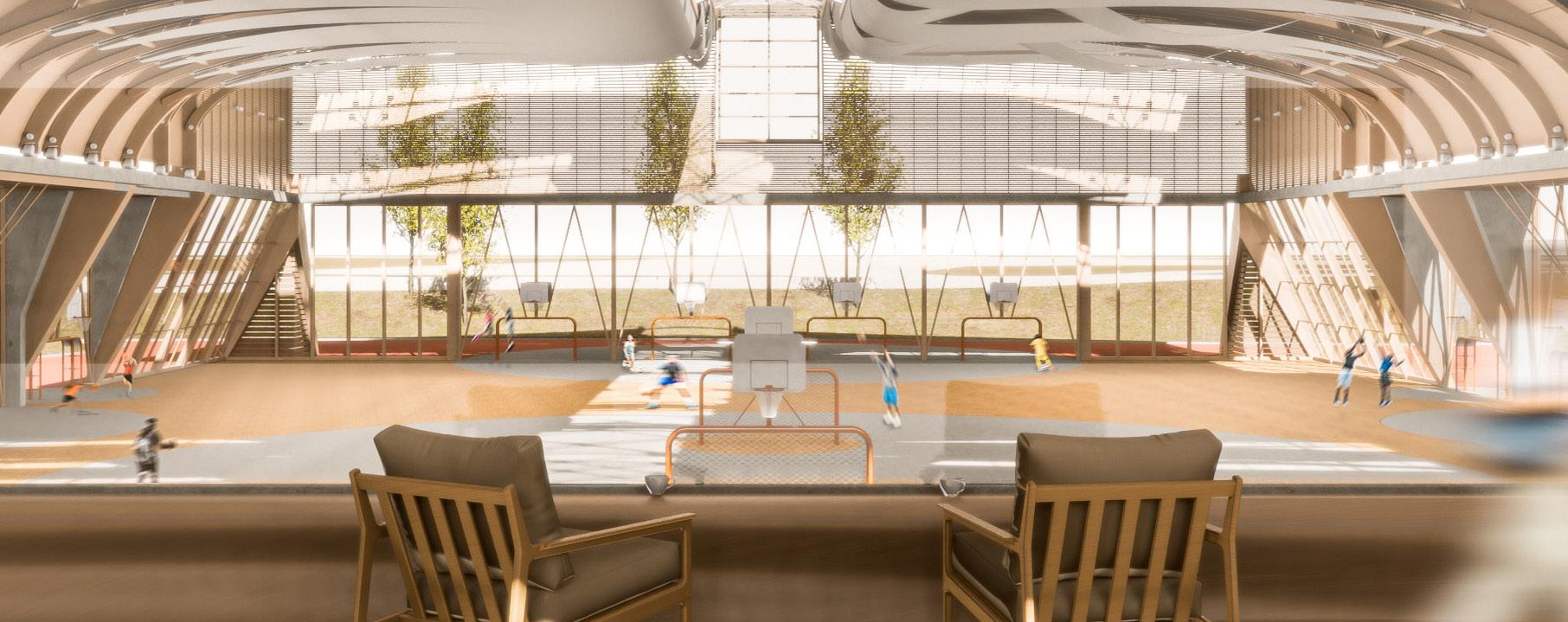 Sports have long been acknowledged as an effective bonding medium between individuals, as people of contemporary societies become increasingly segregated, so do its relevance. Sited in Tempelhof, Berlin, the project speculates on the role architecture plays in encouraging social interactions between users. Rather than optimising athletic performances, this multi-sports centre focuses on maximising participation, as steppingstones to potential friendships.