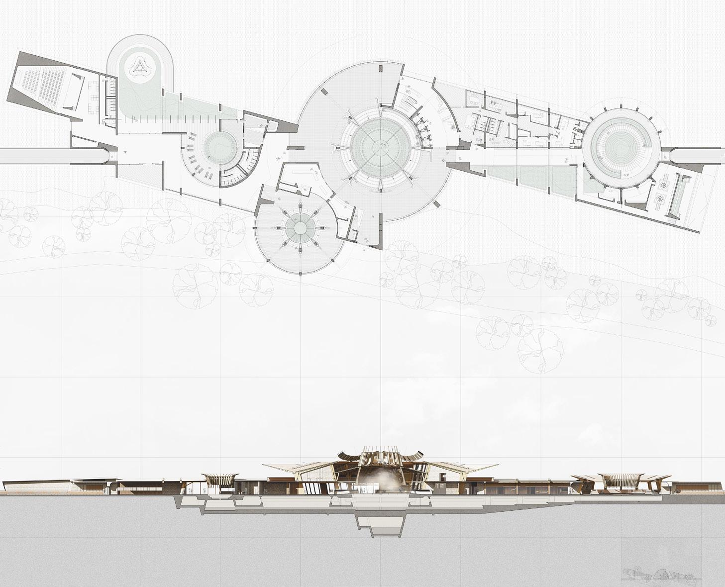 Nestled on the eastern riverbank of Plänterwald Forest, The Cloud Agenda arises as a curative proposition to the water stress imperilment in Berlin. Guised as a performative ecosystem, the research centre is an architectural testbed for urban cloud seeding operations, merging ecological principles of the biotic pump with marvels of hygroscopic cloud seeding technology to conceive an architecture that actively restores the climate and in turn constructs its own microclimate.